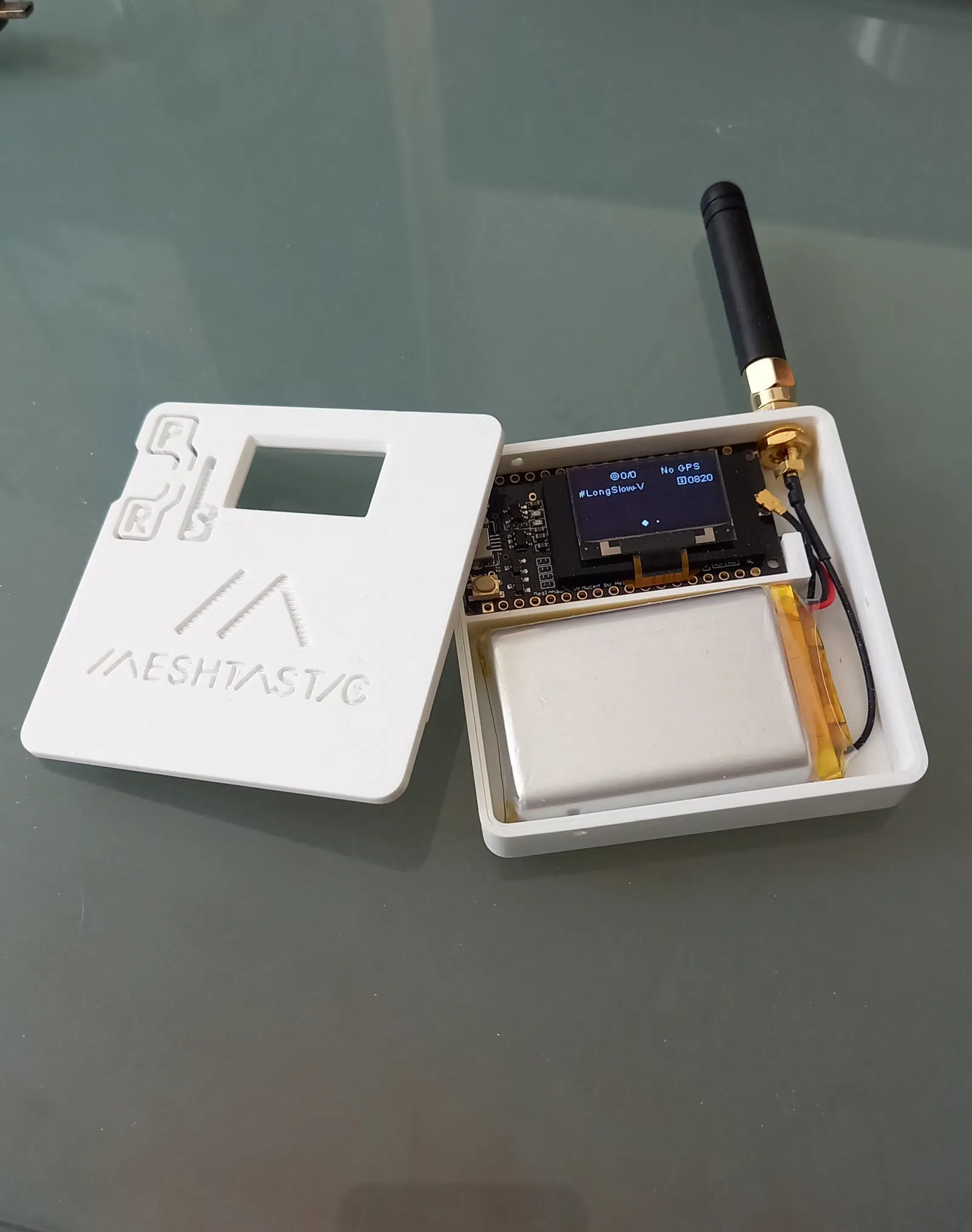 Vỏ case được sửa đổi cho Lilygo TTGO Lora để có thể lắp pin 1000mAh hoặc 2000mAh. Trong tương lai, tôi sẽ thêm vị trí cho công tắc, vì hiện tại máy luôn bật. Phiên bản Meshtastic cho Lilygo TTGO Lora không tự tắt màn hình khi ngắt nguồn USB, do đó màn hình vẫn sáng và tốn khá nhiều pin, nên một công tắc sẽ rất lý tưởng. Hiện tại, tôi chỉ cần khoan một lỗ và nó đã hoạt động :-)