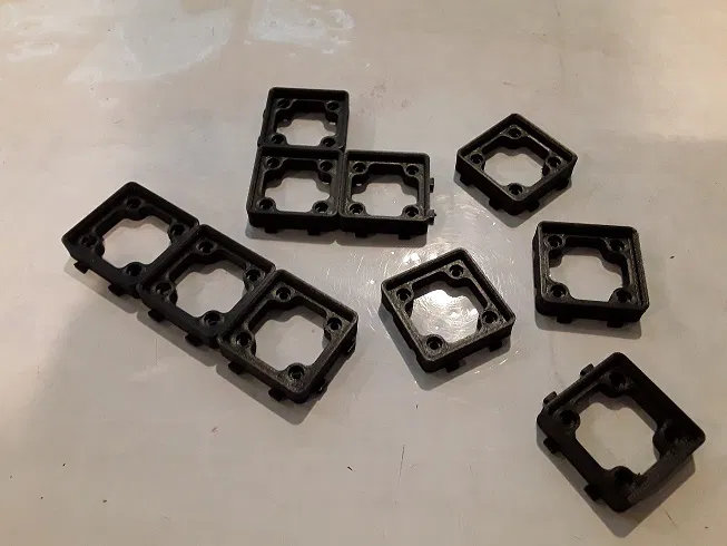 Phiên bản đế Gridfinity của tôi sử dụng kết nối mộng thay vì bắt vít. Kết nối chặt chẽ, không cần hỗ trợ. Có chỗ cho nam châm 6x2mm hoặc vít #4. Đã thêm phiên bản rỗng và liên kết đến phiên bản ngắn hơn.