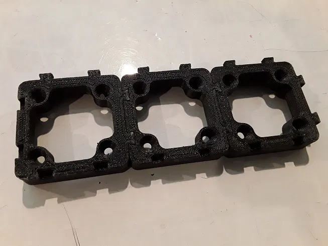 Mô hình này dựa trên Gridfinity của Zack Freedman và phiên bản bắt vít của Kyle Warren. Phiên bản của tôi sử dụng kết nối mộng (dovetail) để kết nối các mô-đun riêng lẻ thành bất kỳ cấu hình nào. Kết nối chặt chẽ và cần dùng dụng cụ để gõ nhẹ kết nối lại với nhau. Một tệp step được bao gồm để sửa đổi và điều chỉnh. Không cần hỗ trợ (support), tuy nhiên, tôi sử dụng hỗ trợ trong các khoảng trống mộng và chúng dễ dàng bật ra. Có chỗ cho nam châm 6x2mm ở trên và nó cũng hoạt động như một lỗ doa cho vít #4.