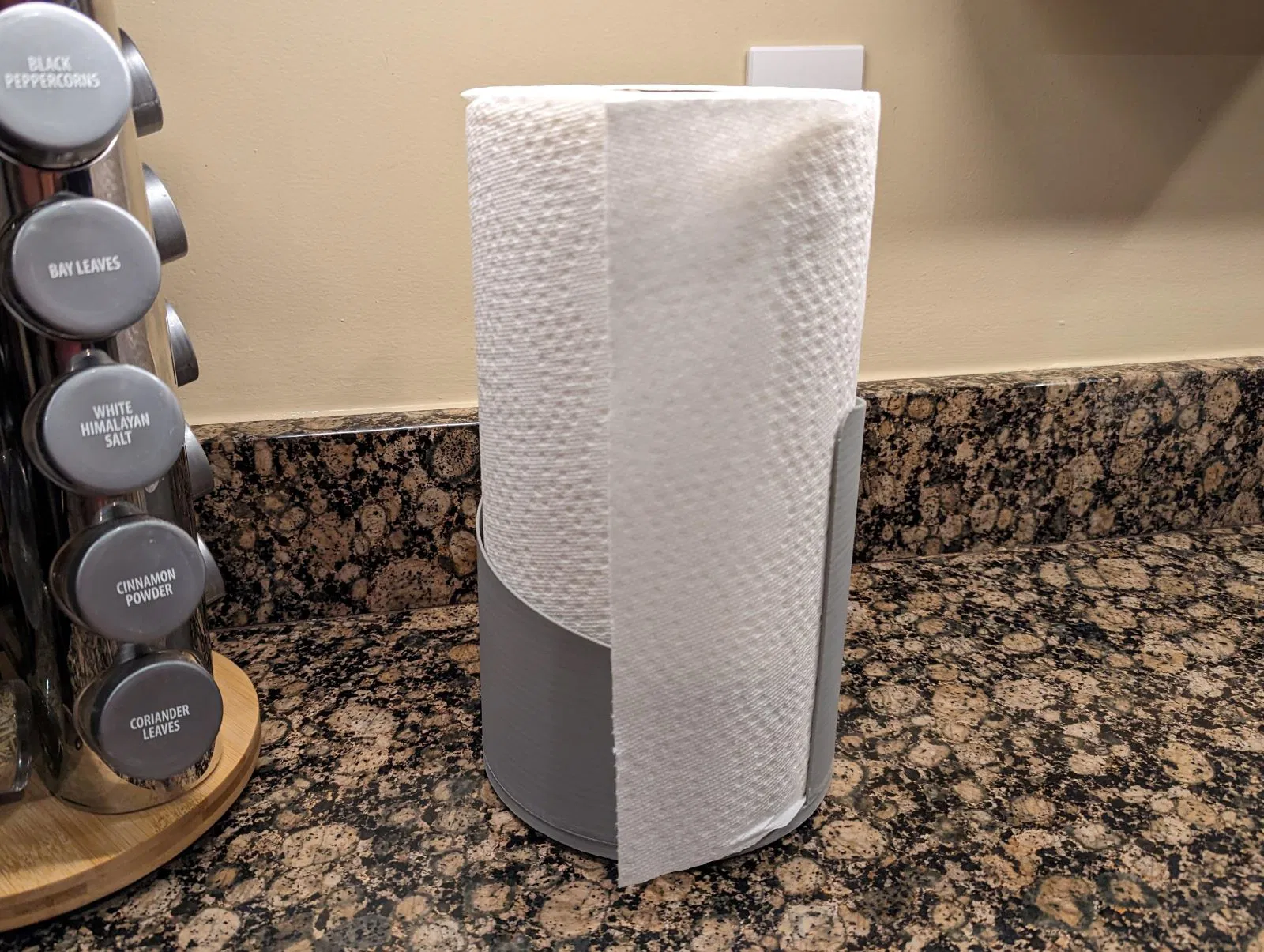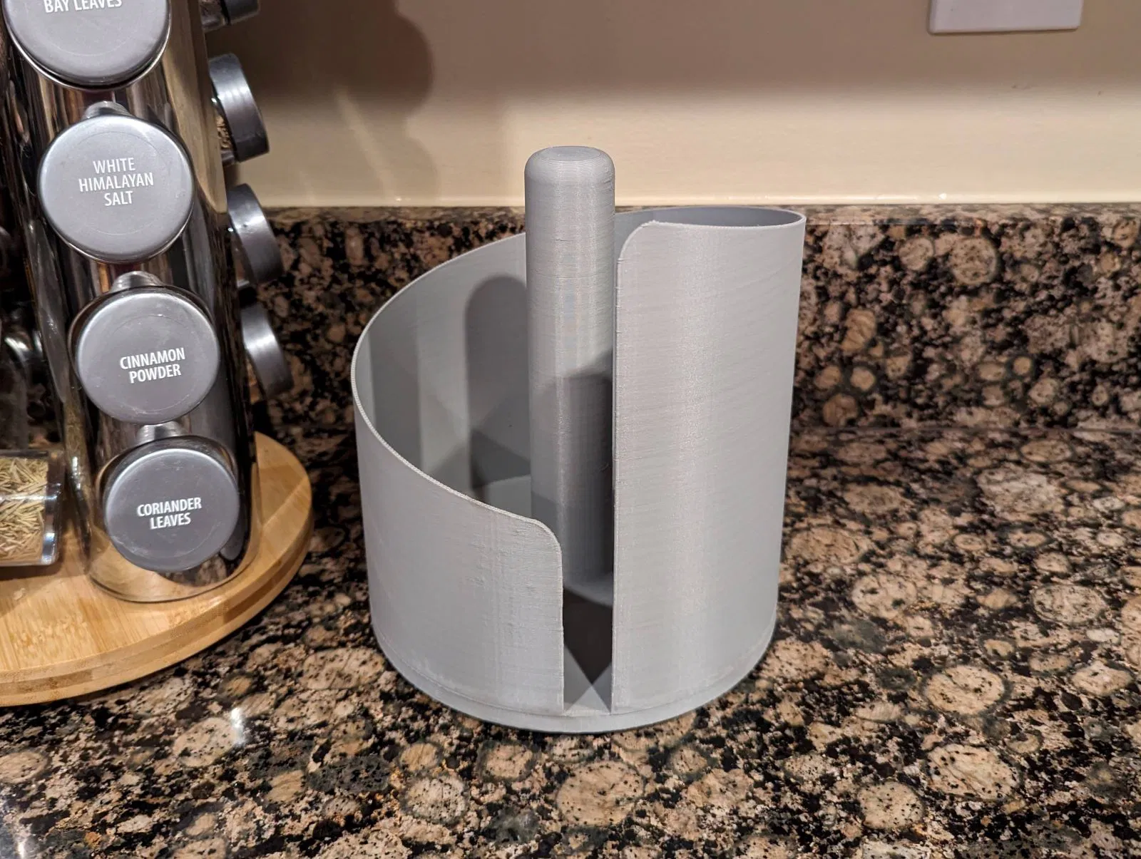 Giá đỡ giấy vệ sinh dạng tự đứng với thiết kế xoắn ốc nhẹ nhàng. Có hai kích cỡ: tiêu chuẩn (160mm bên trong) và jumbo (180mm bên trong) cho các cuộn lớn hơn. Thiết kế độc đáo giúp dễ dàng lấy giấy và có thể tùy chỉnh chiều cao. Hướng dẫn in chi tiết kèm theo.