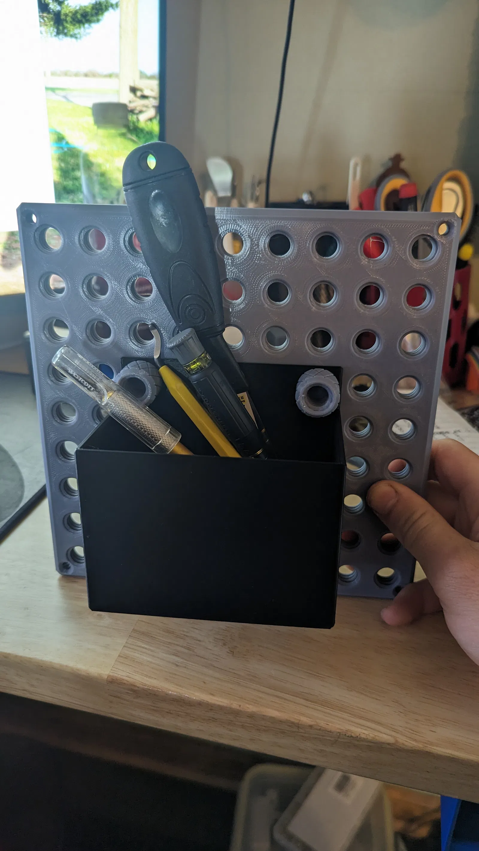 Tổ chức nhà cửa, văn phòng, xưởng làm việc, v.v. bằng hệ thống pegboard module này. Dễ dàng tạo các bộ phận tùy chỉnh bằng các tệp STL đi kèm. Bao gồm các bộ phận cho các khối lập phương và bu lông có ren để kết nối.