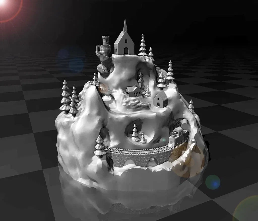 Phiên bản nhỏ gọn vừa vặn trong lòng bàn tay. Có khoang điện tử mở với cửa sập và các ống dẫn lên nhà, nhà thờ và cây thông Noel. Dễ in, không cần hỗ trợ hoặc ván khuôn.