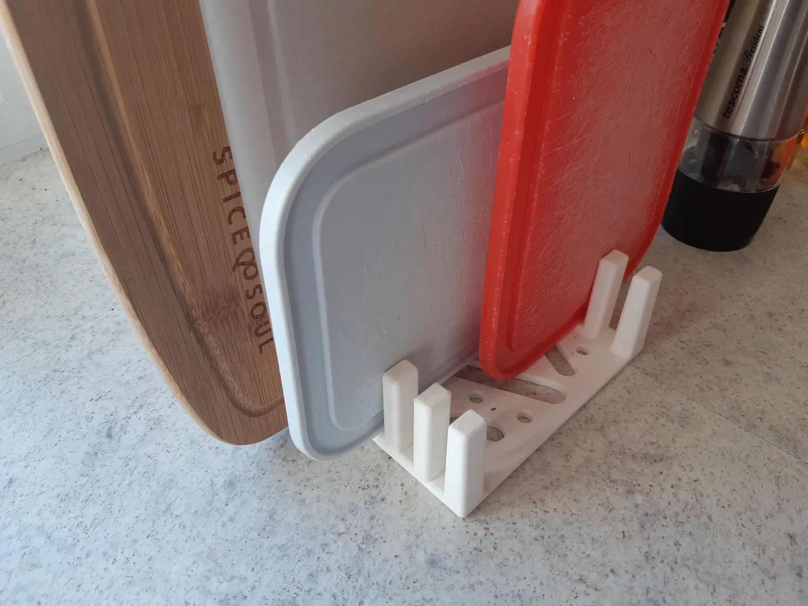 Giá đỡ thớt cho 3 thớt kiểu Ikea + loại khác thường (kích thước 115x150x105mm). Có các khe chứa được 4 thớt dày 9mm và 1 thớt dày 14mm. Lý tưởng để sắp xếp gọn gàng không gian bếp.