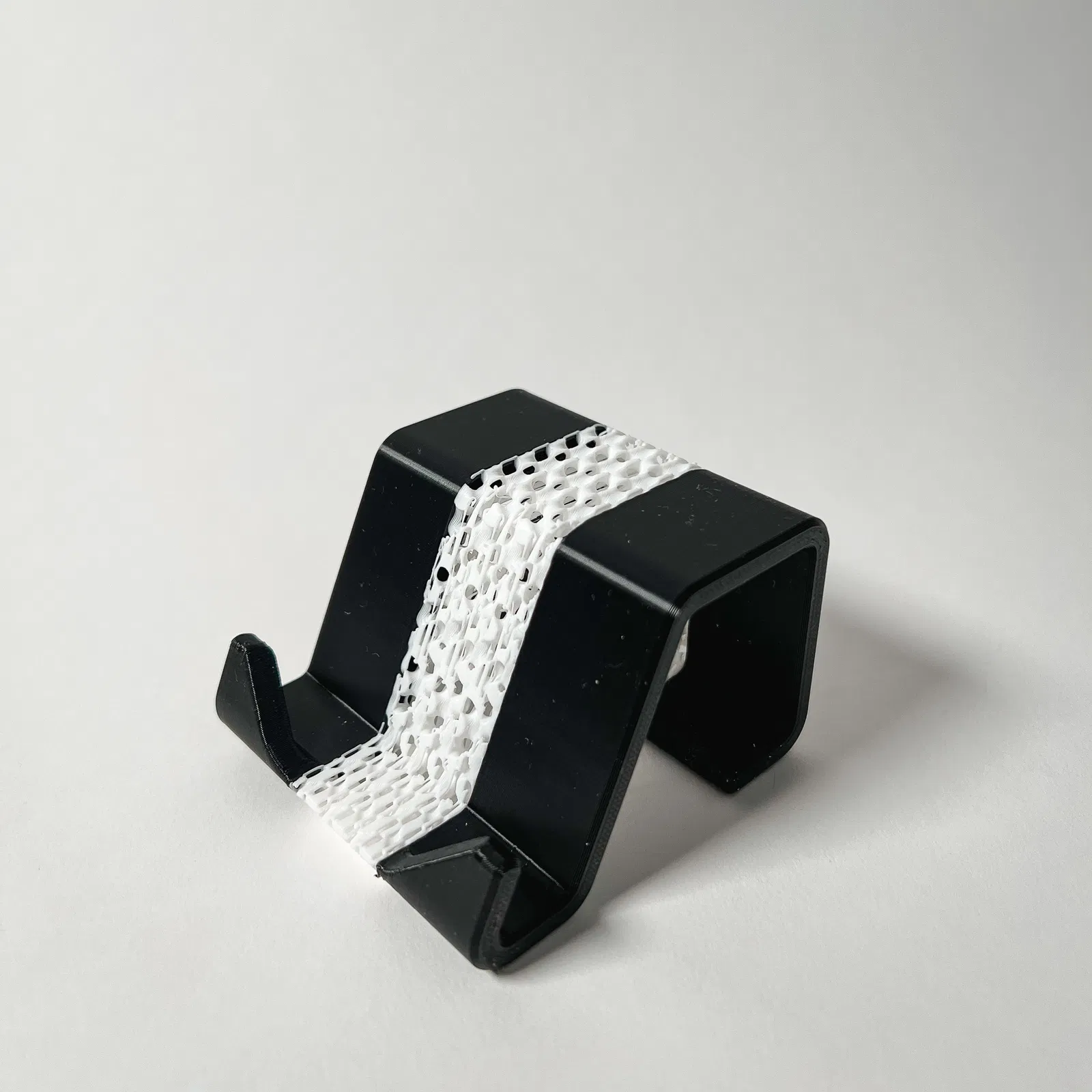 Tôi sử dụng ốp lưng da của Apple và nó vừa vặn. Nếu bạn đang tìm kiếm một giá đỡ có thể sử dụng cáp sạc: CHỈNH SỬA: Tôi đã thêm phiên bản thứ hai cho những người sử dụng ví Apple trên điện thoại của họ Tôi đã thử nghiệm với máy của mình để in phần giữa chỉ bằng infill. Tôi đã thêm Gcode nếu ai đó muốn thử. In nằm nghiêng mà không cần hỗ trợ Nếu bạn muốn một giá đỡ có chỗ để AirPods Pro: