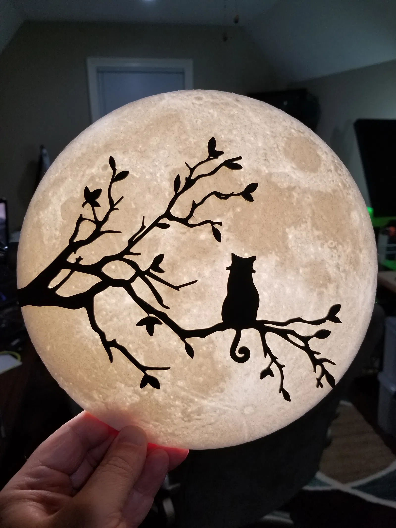 Mèo trên cành cây ngắm trăng lithophane - khúc nhạc trăng thanh