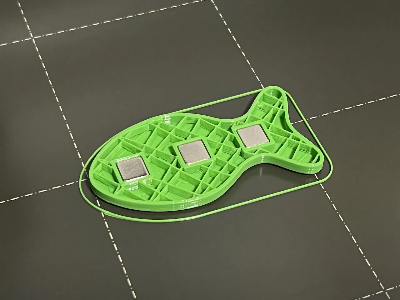 Nam châm tủ lạnh hình cá vui nhộn, sử dụng 3 nam châm khối Neodymium được nhúng trong quá trình in. Bản in có tùy chỉnh lớp cao chi tiết cho bề mặt trên, với tùy chọn .step file để tùy chỉnh nam châm. Có cả phiên bản Mini.