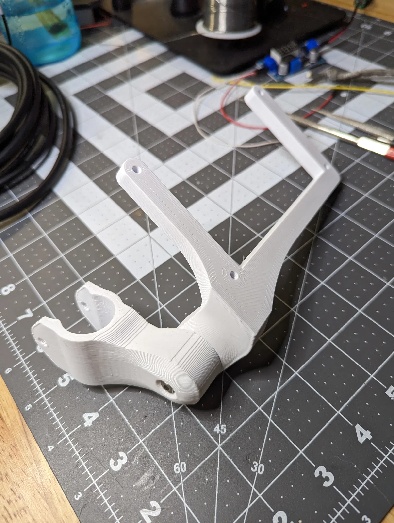 Phiên bản này hoạt động rất tốt và tôi đã sử dụng nó được một năm. Tại một thời điểm nào đó, tôi muốn cập nhật thiết kế để sử dụng cơ chế khóa kẹp vào cột để siết chặt cuối cùng thay vì sử dụng bu lông để siết chặt. Bao gồm cả tệp step để dễ dàng sửa đổi cho các đường kính cột khác nhau.