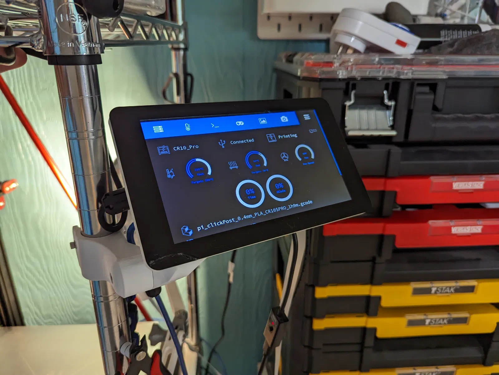 Giá đỡ chắc chắn cho màn hình cảm ứng Raspberry Pi, không bị rung lắc khi bạn chạm vào. Được thiết kế để gắn trên cột có đường kính 25mm. Của tôi được gắn trên kệ dây Seville classic Ultradurable.