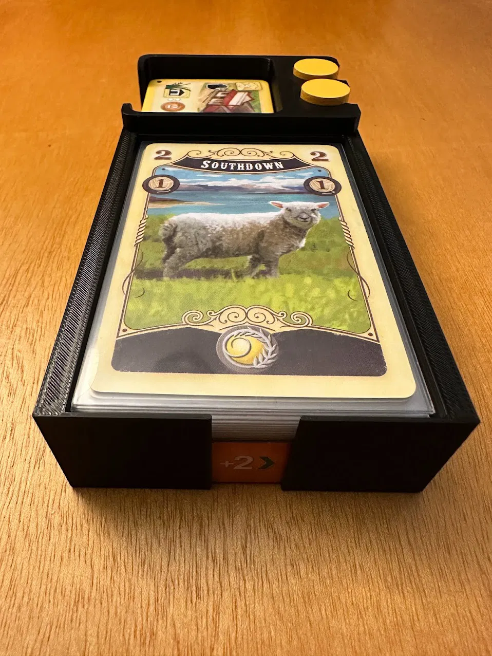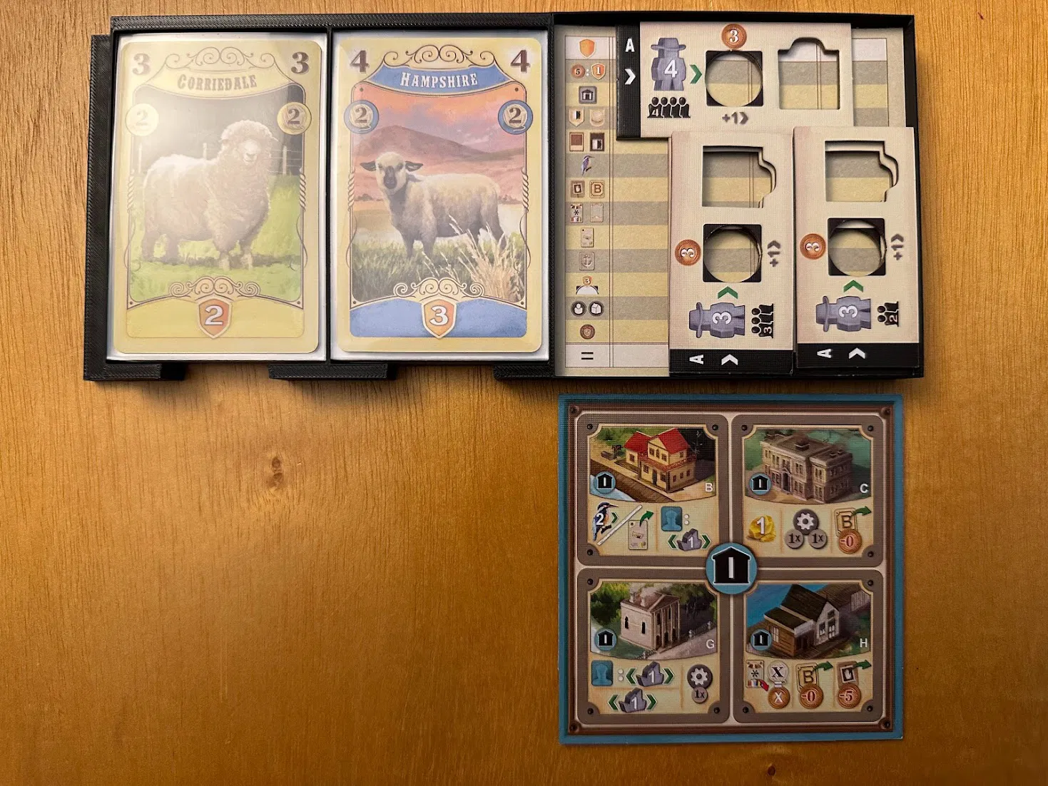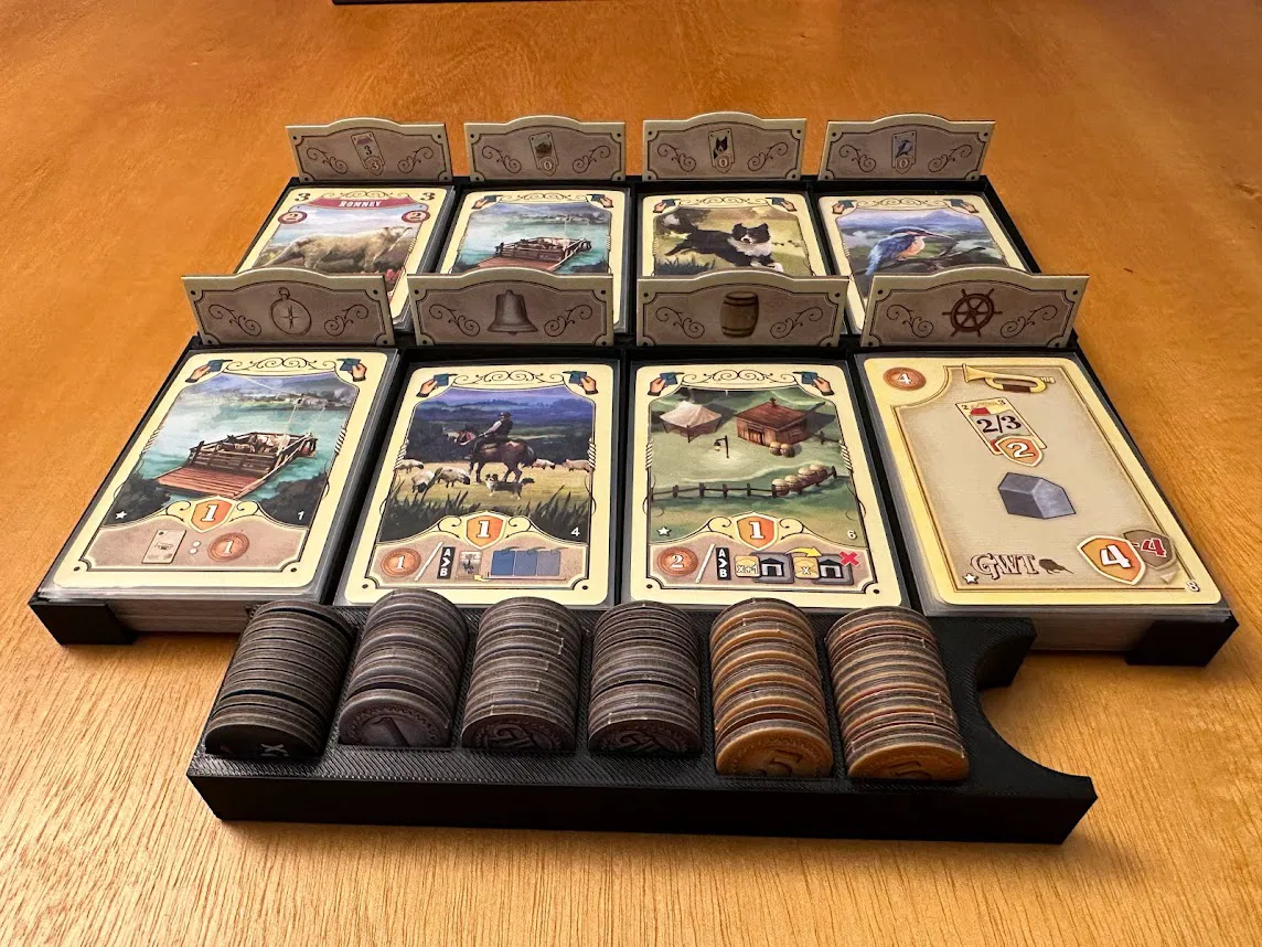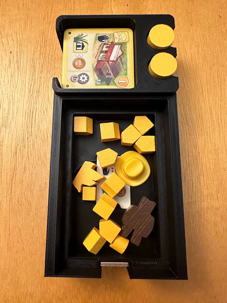 Đây là một insert cho GWT: New Zealand để giúp việc thiết lập bàn chơi trở nên hiệu quả hơn. Với chiều cao hộp nông, bảng người chơi hai lớp và hai bảng bản đồ, việc xếp tất cả mọi thứ vào trong hộp là một thử thách. Một vài thỏa hiệp nhỏ đã được thực hiện bao gồm một vài bức tường mỏng, tuy nhiên tất cả các khay đựng thẻ đều có thể chứa thẻ có bọc (hình ảnh GameGenic Prime), và có sự nâng nắp tối thiểu. Hộp có thể được lưu trữ theo chiều dọc mà không ảnh hưởng đến các thành phần bên trong. Các bộ phận này đã được in bằng đầu phun 0.4, chiều cao lớp 0.2mm và 15% infill. Cập nhật 8/30: Tôi đã tạo một tệp chia cho các khay đựng thẻ cho những người có bàn in nhỏ hơn. Chúng có độ dài tổng thể dài hơn một chút (0.5mm) so với khay 4 khe, và bạn sẽ cần in 4 chiếc để chứa tất cả các thẻ cần thiết. Cập nhật 9/1: Sau đề xuất xem xét lại các token A/B, tôi đã có thể đặt cả hai túi vào hộp mà không cần phải lấy token ra! Một tệp mới - các tòa nhà trung lập mục tiêu - đã được thêm vào và là thứ duy nhất cần in cho những người đã in tất cả các tệp. Túi token B vừa vặn vào khoảng trống ở lớp dưới cùng, và túi token A vừa vặn vào khu vực token A/B trước đó. Tôi cũng đã di chuyển các điểm đánh dấu bảng người chơi 1/2/3/4 đến giữa ô xây dựng trung lập và sổ điểm để dễ dàng truy cập hơn. Cập nhật 11/9: Tôi đã nhận được một vài yêu cầu chia khay solo và khay chợ/sổ điểm cho bàn in nhỏ hơn. Các tệp này đã được chuyển sang một thư mục mới và sử dụng bộ kết nối dạng mảnh ghép. Tôi cũng đã bao gồm một loại khay thứ hai cho tiền (loại B) có phần mở hơn và cho phép bạn chỉ cần đổ các mảnh vào thay vì sắp xếp chúng để lưu trữ. Cập nhật 7/14/24: đã sửa mô hình GWT NZ market short.stl bị lỗi tab trôi nổi (cảm ơn @IanCornwall_2198922!) Cảm ơn js500 đã sử dụng các tệp khay người chơi gốc của anh ấy cũng như khay đánh dấu trao đổi mà từ đó tôi đã lấy kích thước của các token. Khay đựng thẻ Các khay đựng thẻ bài (deck-building), thẻ thưởng và thẻ mục tiêu có một khe ở trên cùng để giữ nhãn thẻ tương ứng, giúp xem dễ dàng trên bàn và tiết kiệm một chút không gian. Bạn sẽ cần in hai khay đựng thẻ để chứa các thẻ bài (deck-building) và thẻ thưởng. Bộ thẻ cừu chợ được chia thành hai khay bên cạnh bộ hỗ trợ xây dựng/sổ điểm. Khay này có thể được sử dụng như hiện tại và cũng sẽ giữ bộ hỗ trợ xây dựng tiện dụng cho thông tin về các tòa nhà trung lập. Các điểm đánh dấu bảng số người chơi nằm dưới bộ hỗ trợ xây dựng. Khay người chơi có khe khóa Mỗi khay người chơi giữ tất cả các ô xây dựng, token, thẻ (bao gồm cả thẻ có bọc), mũ và quân của người chơi. Token hình vuông màu cam được sử dụng làm "chìa khóa", chỉ cần trượt nó lên từ vị trí nghỉ ở phía trước khay để hỗ trợ việc lấy thẻ ra. Sổ điểm hơi chật một chút nhưng sẽ vừa nếu giữ song song với đáy khay. Chúc bạn in ấn vui vẻ!