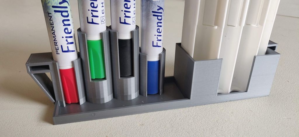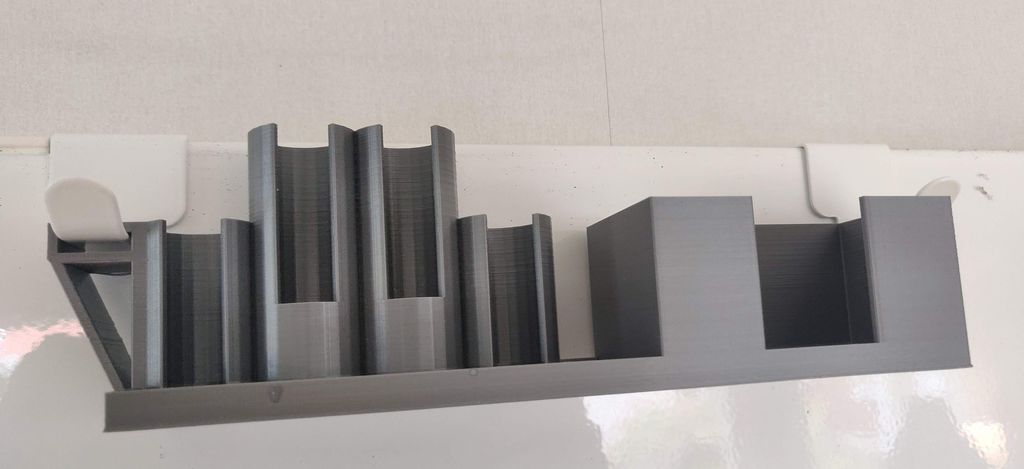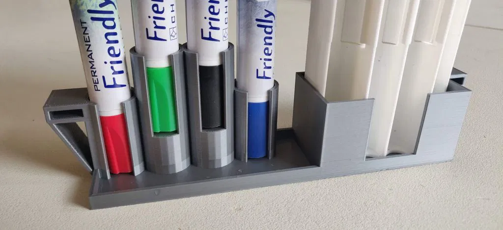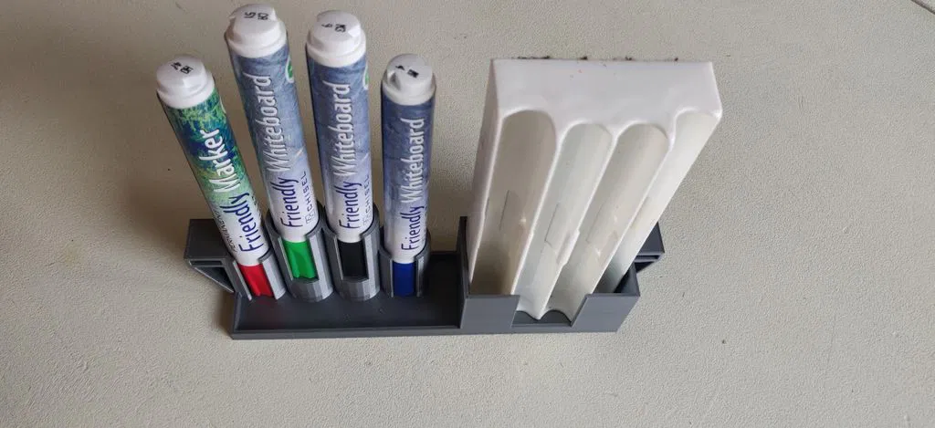 Tôi đã chán ngấy việc bút viết bảng rơi ra khắp nơi và cục tẩy làm bẩn tường... :) Chỉ cần in ra và mua các "móc" nhỏ hơn cho bảng trắng của IKEA. Tôi đang sử dụng cục tẩy Måla. Bút đi kèm với Måla đã hết sau một thời gian, vì vậy tôi vừa mua những cái này, nhưng tôi nghĩ "bất kỳ" loại bút thông thường nào cũng có thể dùng được. :)