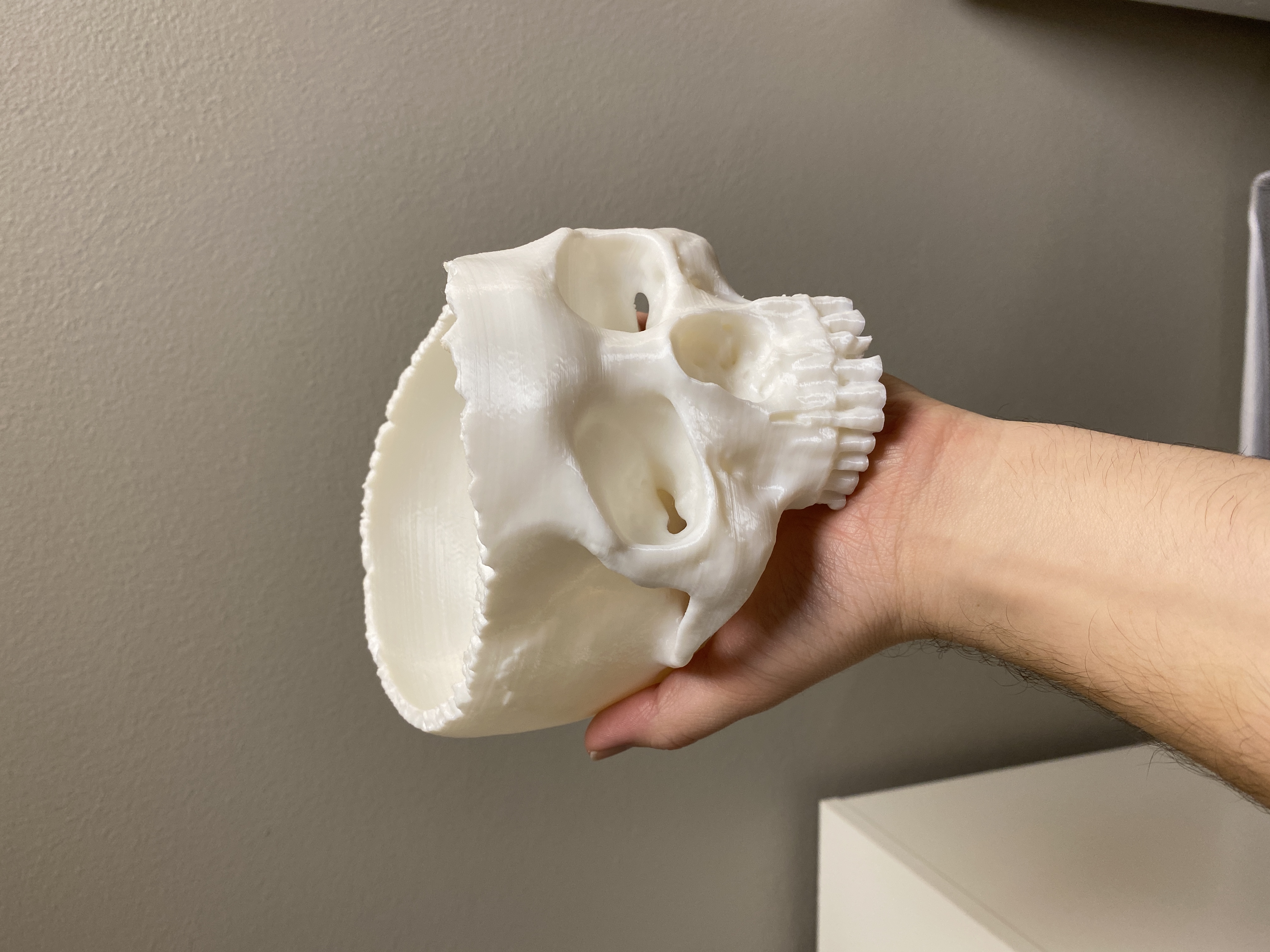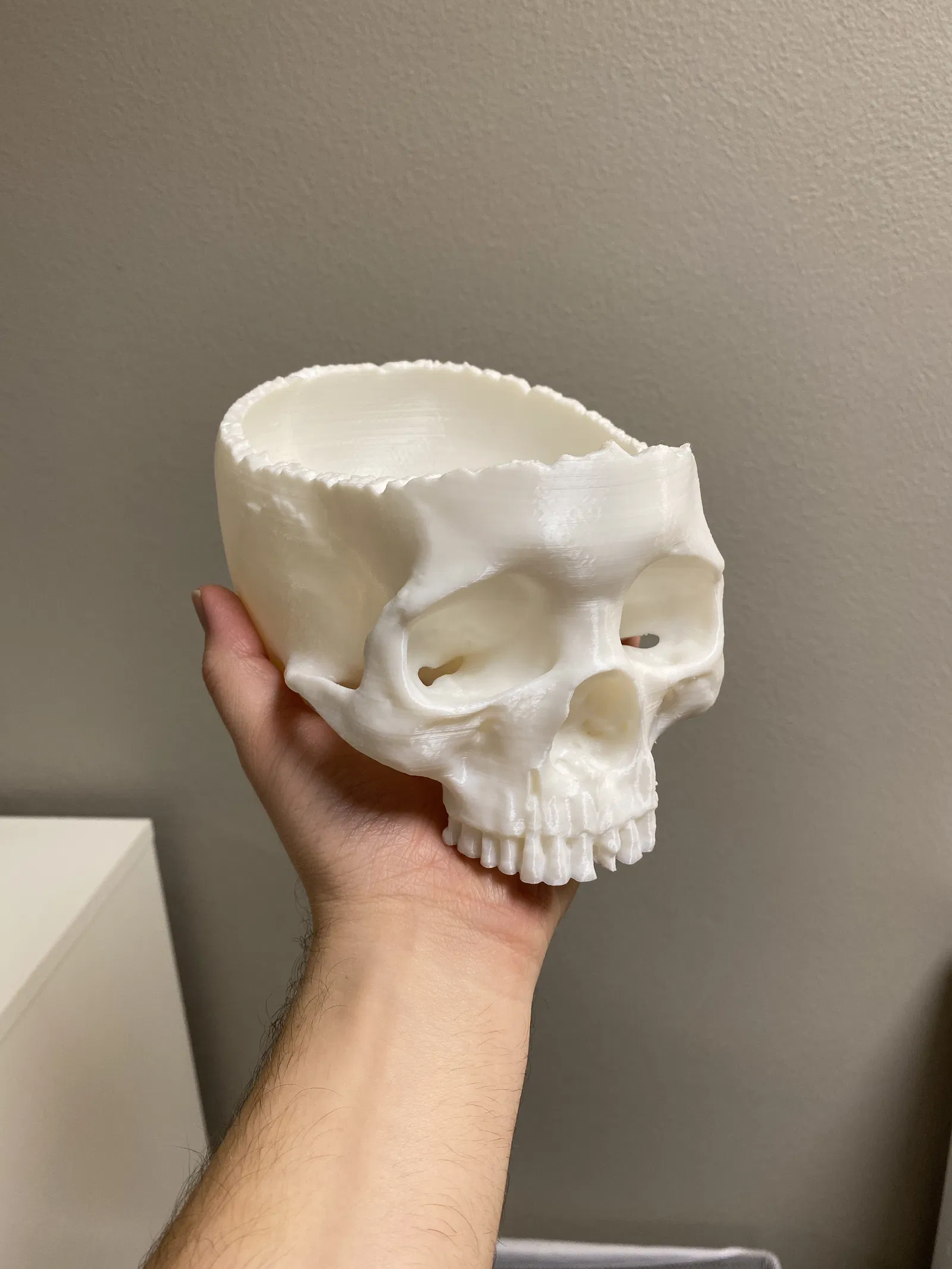 Tô đựng kẹo hình đầu lâu chân thực cho dịp Halloween. Bản in 3D thú vị, được thiết kế không cần hỗ trợ nhưng có thể cần hỗ trợ cho các chi tiết dốc. Bản in dài nhưng xứng đáng. Hoàn hảo để trang trí Halloween.