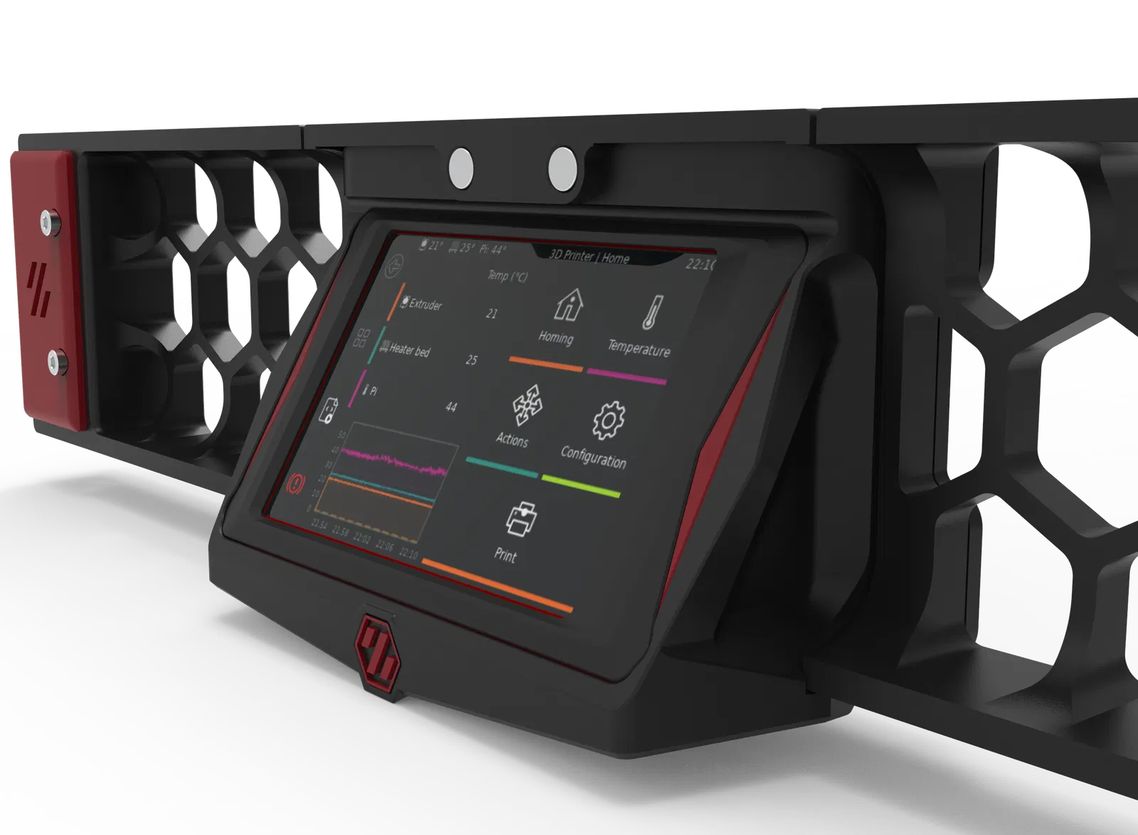 Nên in bộ phận viền trang trí và phần đế viền/bộ giữ màn hình với chiều cao lớp in 0.1mm hoặc mỏng hơn. Bản thân vỏ trông đẹp khi in ở chiều cao lớp 0.2mm.