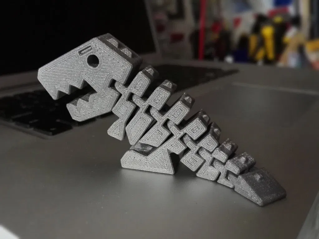 Phiên bản Flexi Rex cải tiến với các mắt xích chắc chắn hơn, ít bị gãy hơn khi trẻ em cầm nắm. Nguồn chính là kho lưu trữ GitHub. Bao gồm hướng dẫn in và thông tin về giấy phép.