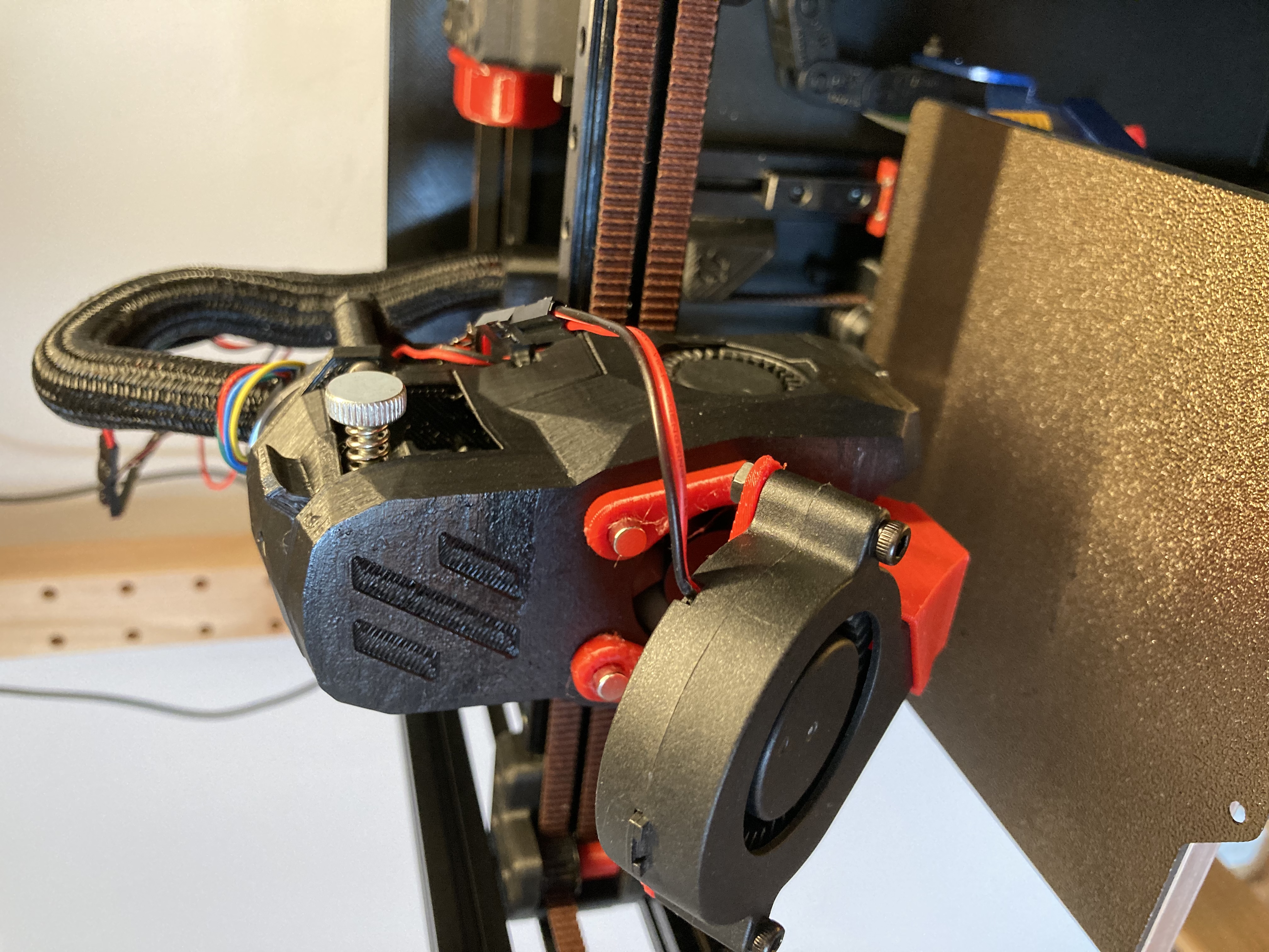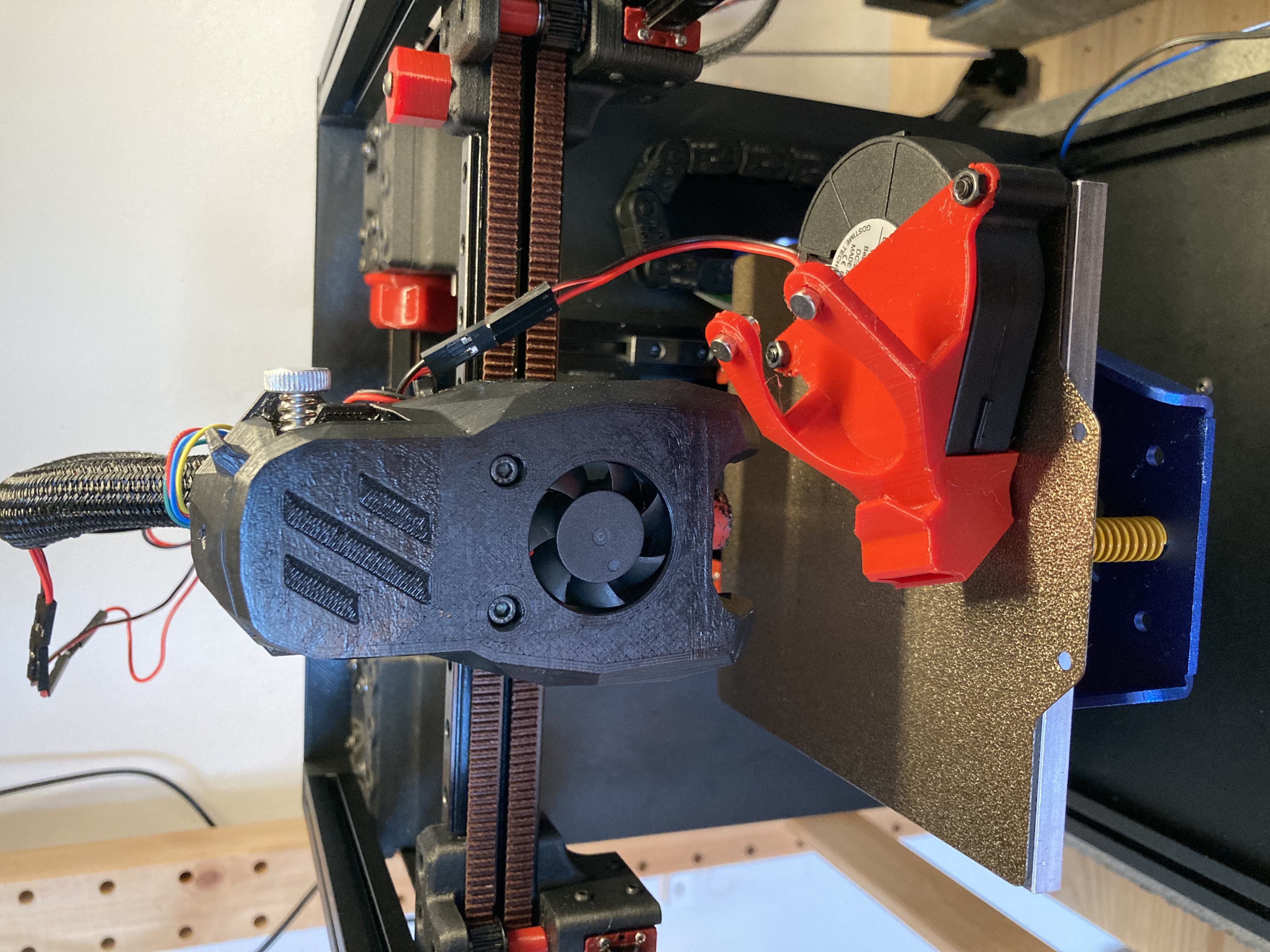 Tôi đã hơi thất vọng với hiệu suất làm mát của Voron 0 của mình vì nó dường như là nút thắt cổ chai cho việc in PLA và PETG nhanh chóng. Tôi đã nghĩ ra một cách để gắn một quạt thổi khí 5015 tương tự như Prusa Mk3s. Tôi cũng muốn nó có thể dễ dàng tháo rời, vì cửa sẽ không đóng khi gắn nó vào. Tôi đã tạo ra thiết kế snap-on từ tính này, có thể gắn và tháo bằng một tay.