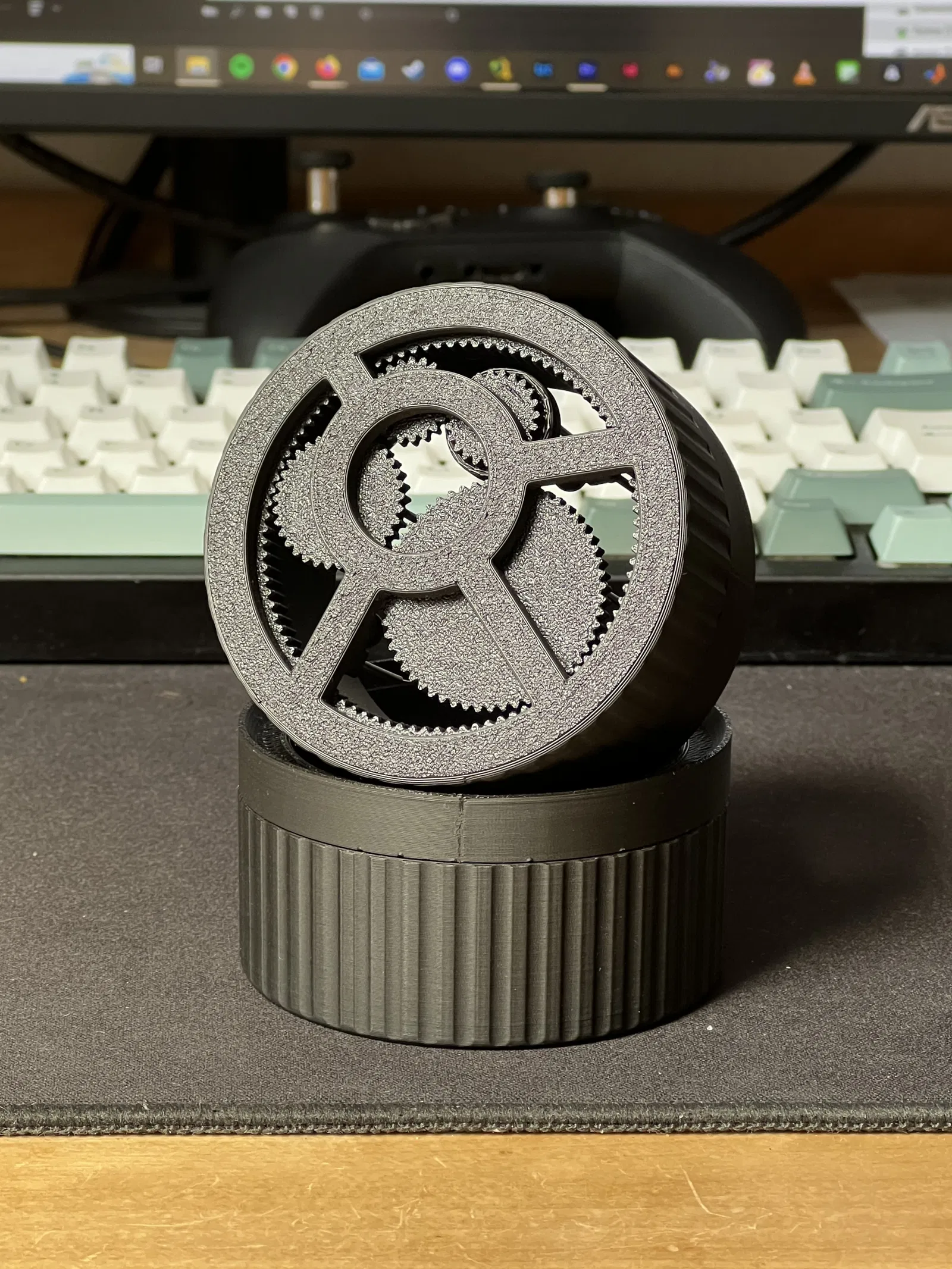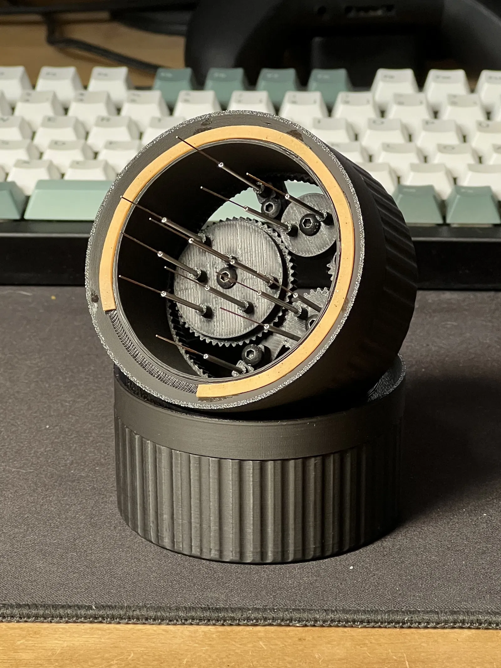 Đây là phiên bản dụng cụ WDT spirographic của tôi để phân phối cà phê. Để lắp ráp, bạn cần bu lông M3 và kim làm sạch đầu phun 0.3mm. Các lỗ bu lông và ống kim cần được khoan để vừa vặn.