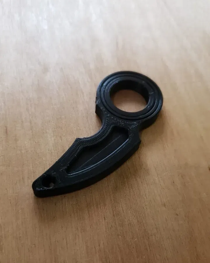 Một bản remix và kiểu kết hợp giữa vòng bi in-place và móc khóa karambit. Chính karambit dựa trên thiết kế của HorusTheForest với sự sửa đổi để chấp nhận vòng bi in-place của Jerryie. Tất cả các mô hình đã được làm lại để đảm bảo có độ dung sai thích hợp và kích thước tốt để vừa với ngón tay của bạn.