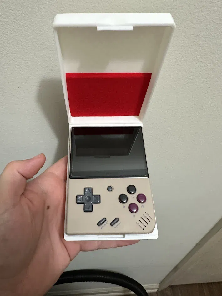 Một mô hình tuyệt vời được tìm thấy trên Onshape và đã được tinh chỉnh để hoạt động với Miyoo Mini Plus. Chỉ cần lật nắp trên và in với chữ 'm' úp xuống.