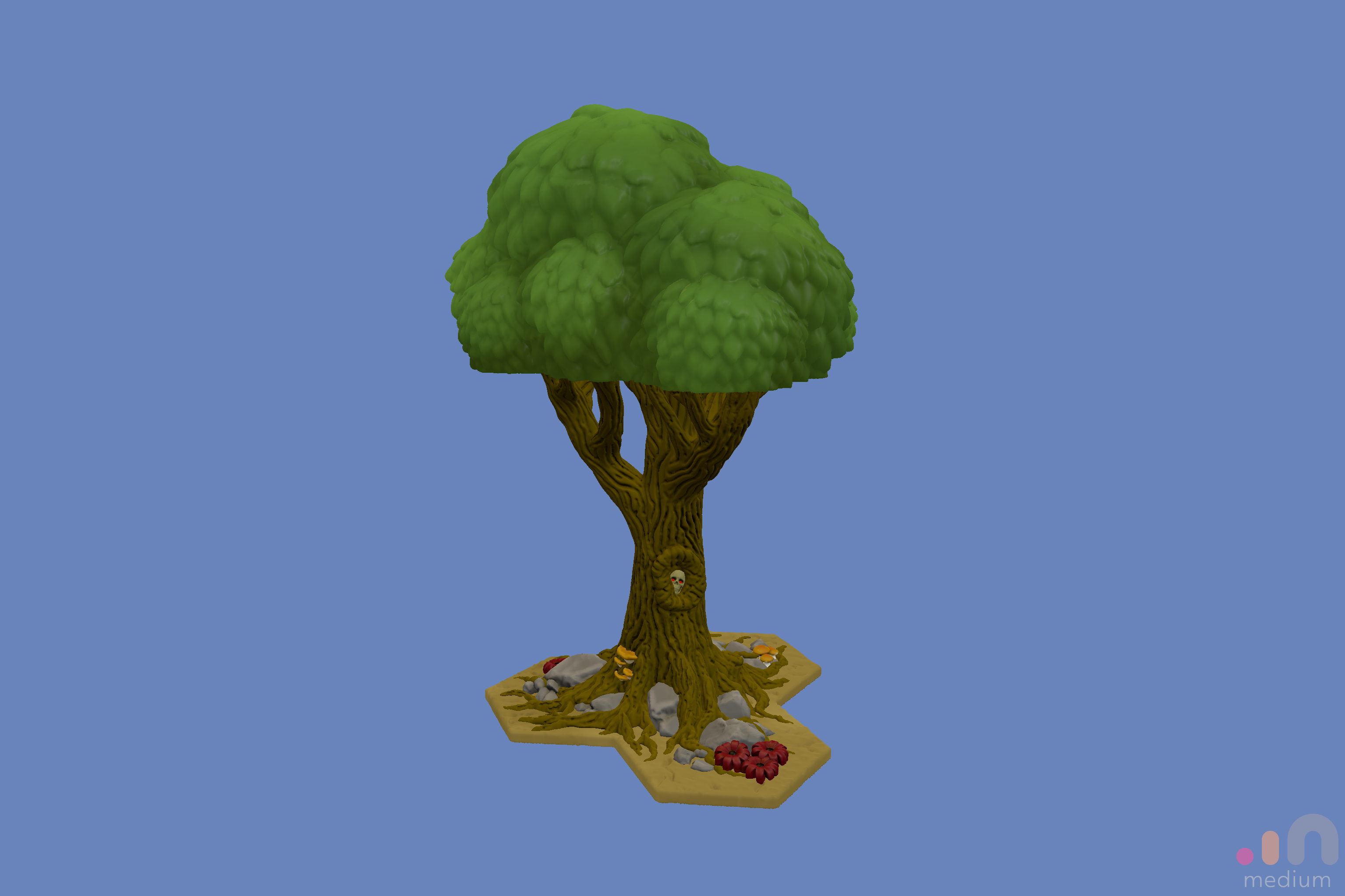 Mô hình thay thế ô gạch cho board game Gloomhaven. Tán cây có thể tháo rời, không cần support. Phiên bản V2 được tối ưu về tỉ lệ, V1 có tán cây và thân dày hơn. Hướng dẫn in ấn và hậu kỳ chi tiết.