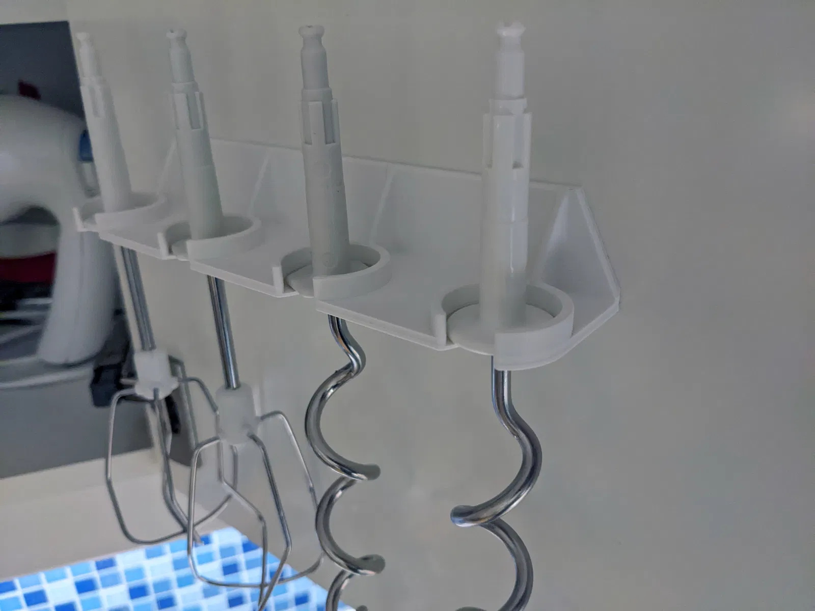 Giá đỡ cho phới đánh trứng và móc của máy xay Braun. Sử dụng băng dính hai mặt để gắn. Có hai phiên bản với khoảng cách 54 mm và 34 mm.