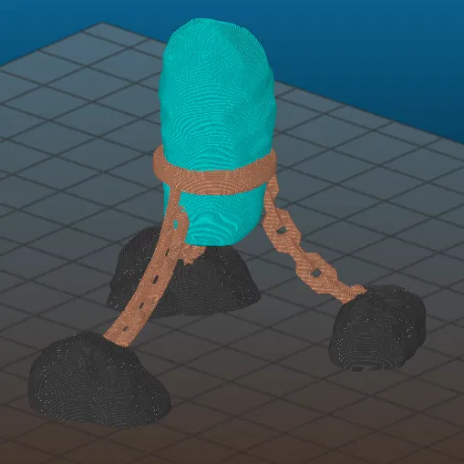 Phiên bản chỉnh sửa "Tảng Đá Treo" cho máy in đa vật liệu, hỗ trợ in nhiều màu sắc. Tệp hỗ trợ Meshmixer đi kèm. Có thể in 3 màu trên máy in 2 màu bằng cách thay đổi sợi nhựa, và có tệp 3mf đơn lẻ.