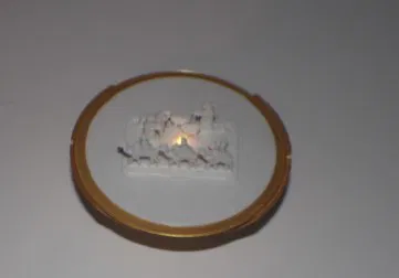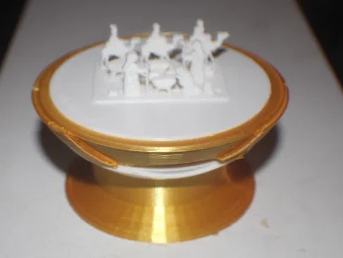Mô hình Chúa Giáng sinh có đèn đặt trên giá đỡ. Một ngọn nến nhỏ (tealight) được đặt trong đế để tạo hiệu ứng ánh sáng. Thích hợp để trang trí trong mùa lễ hội.