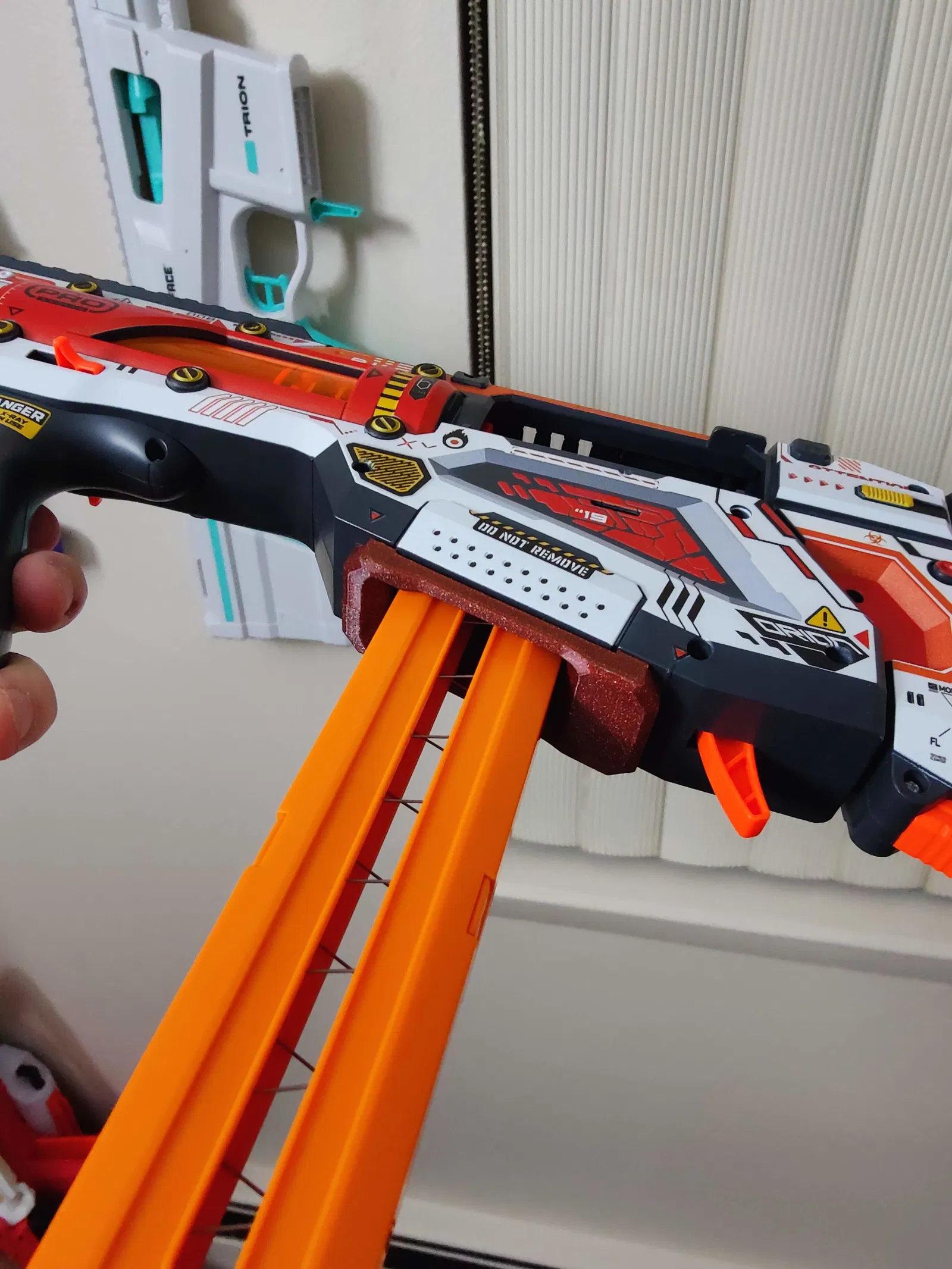 Để sử dụng, in cả hai nửa trái và phải của phiên bản "Low Profile" hoặc "Flared". Cả hai phiên bản này đều sử dụng các bộ phận bên trong từ bộ chuyển đổi X-Shot nửa dart đi kèm, và cả hai đều yêu cầu cắt bỏ một phần của bộ chuyển đổi chốt giữ băng đạn, vì vậy đây không phải là bản mod dành cho bạn nếu bạn muốn quay lại bộ chuyển đổi băng đạn gốc.