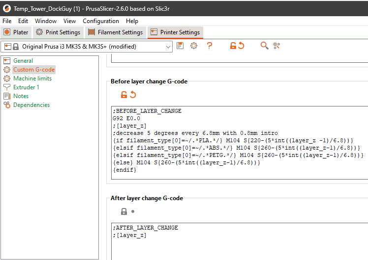 {elsif filament_type[0]=~/.*PETG.*/} M104 S{260-(5*int((layer_z-1)/6.8))}