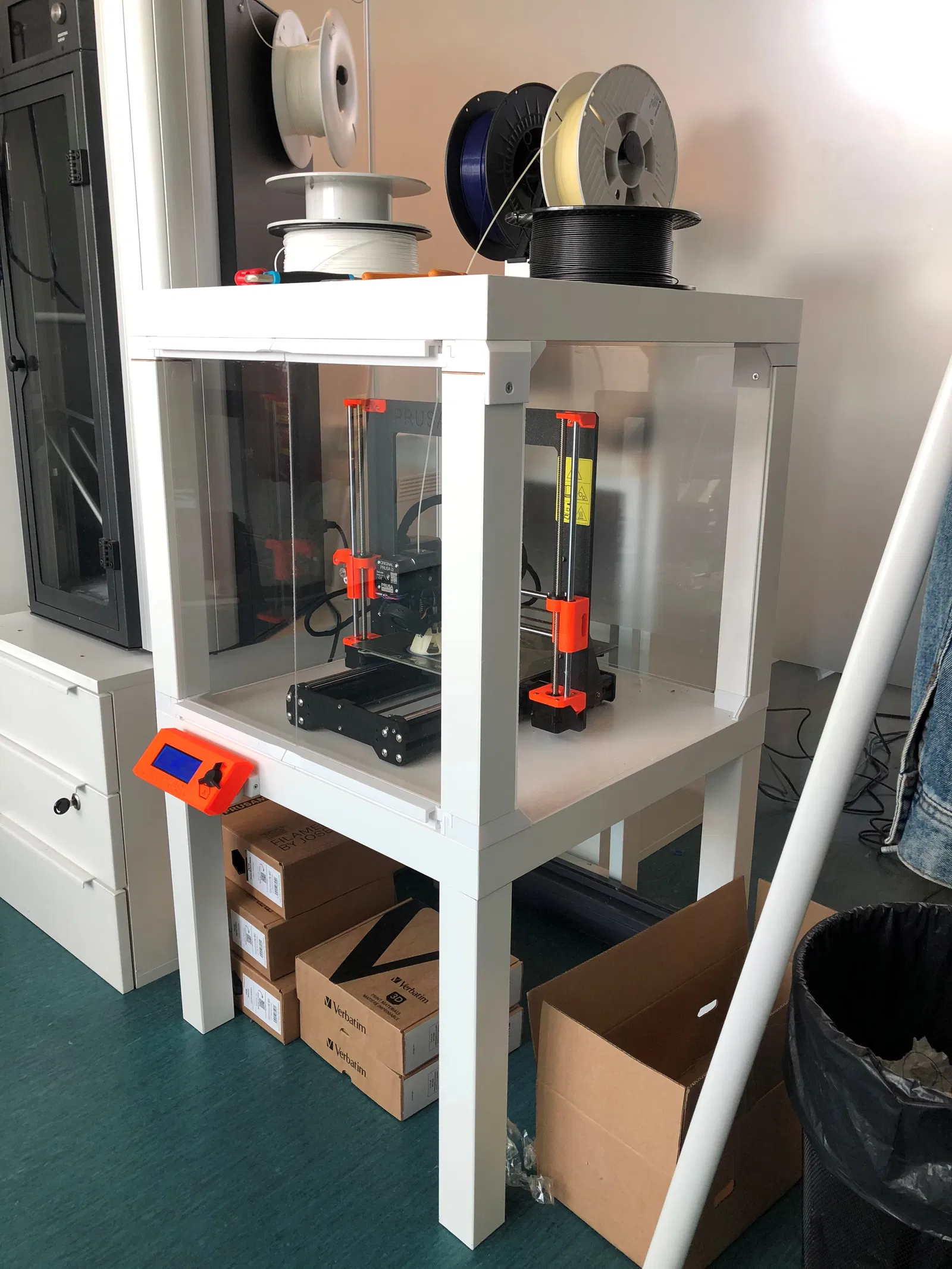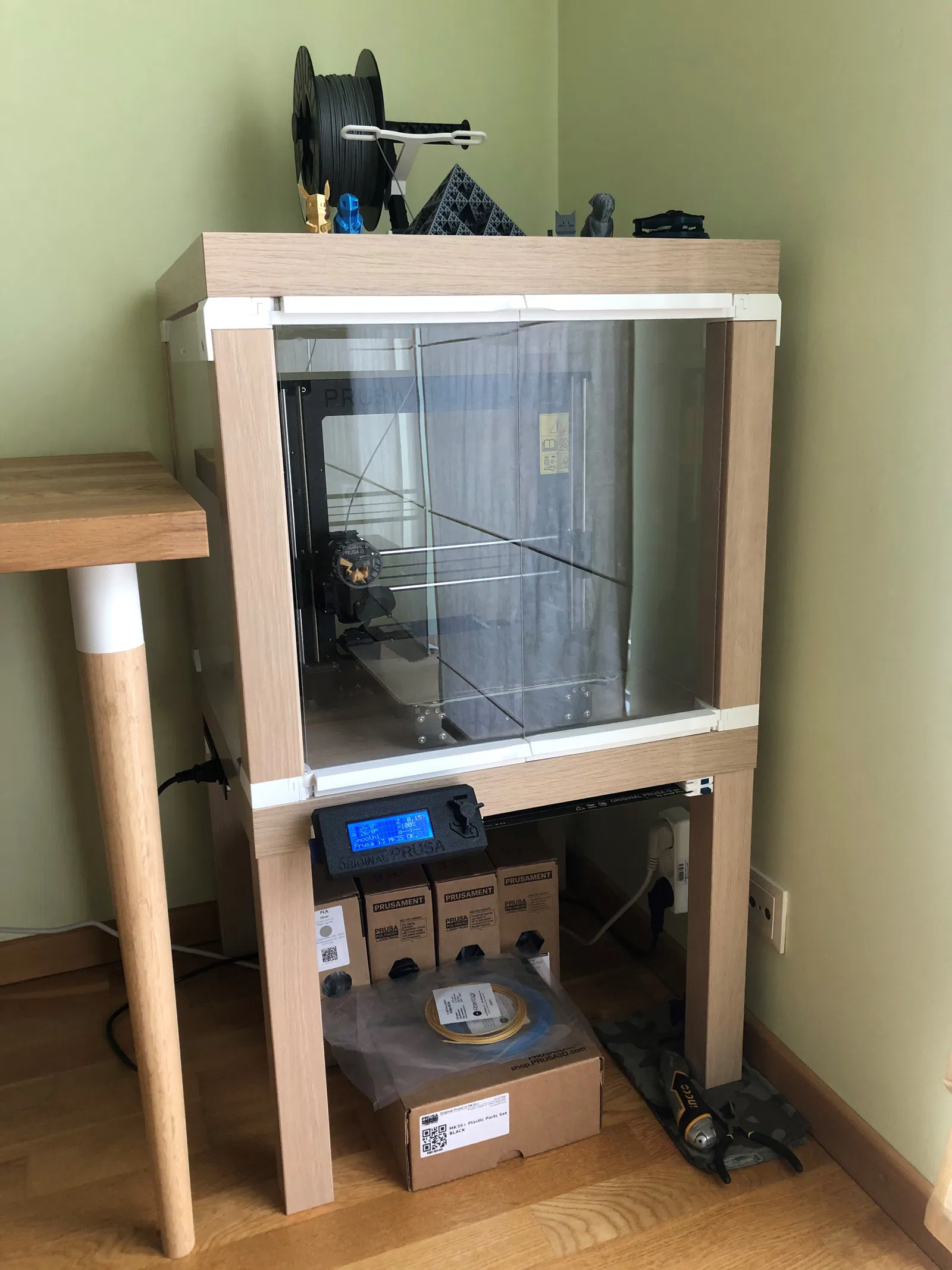 Bản phối lại vỏ tủ Ikea Lack này có cửa trượt thông minh giúp tiết kiệm không gian, lý tưởng cho việc in PLA. Hướng dẫn chi tiết bao gồm danh sách bộ phận, cài đặt in PETG và các bước lắp ráp.
