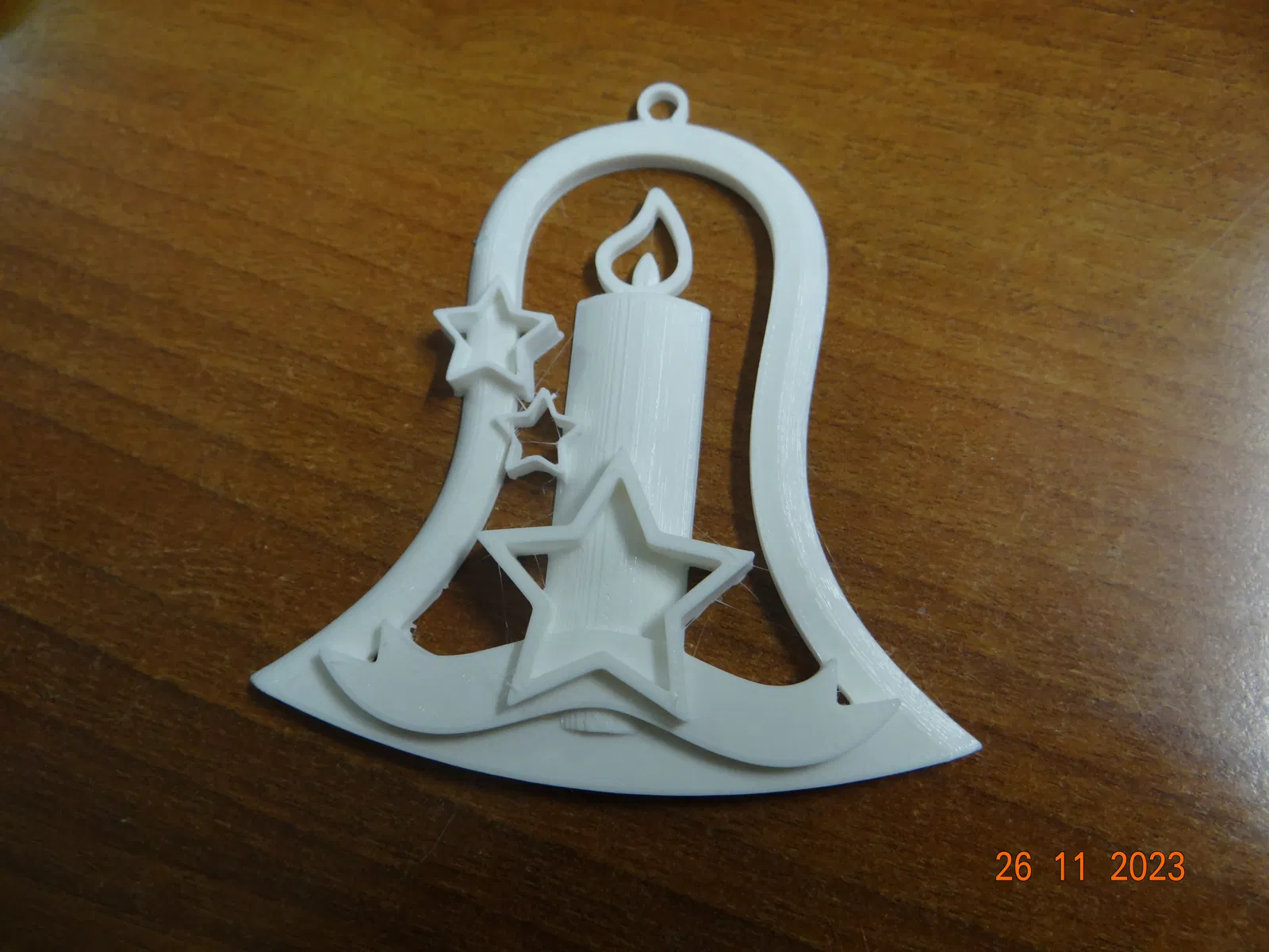 Một chiếc chuông Giáng Sinh với các họa tiết ngôi sao và cây nến. Hoàn hảo để trang trí cây thông Noel hoặc làm quà tặng ý nghĩa. In dễ dàng với PLA, không cần support.