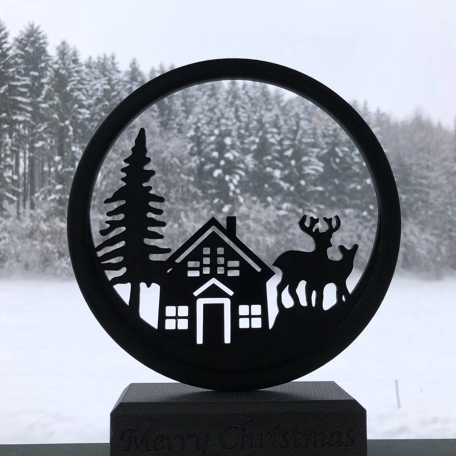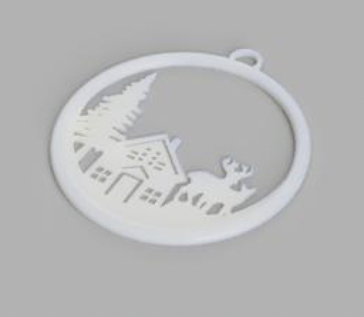 Mô hình trang trí cảnh quan mùa đông 2D với phần đế đỡ, có phiên bản móc treo. In bằng PLA, đầu phun 0.4 mm, chiều cao lớp 0.15 mm. Khuyến khích sử dụng Infill “lightning” và “Hilbert curve” trên PrusaSlicer để tiết kiệm vật liệu và tạo hiệu ứng đẹp mắt.