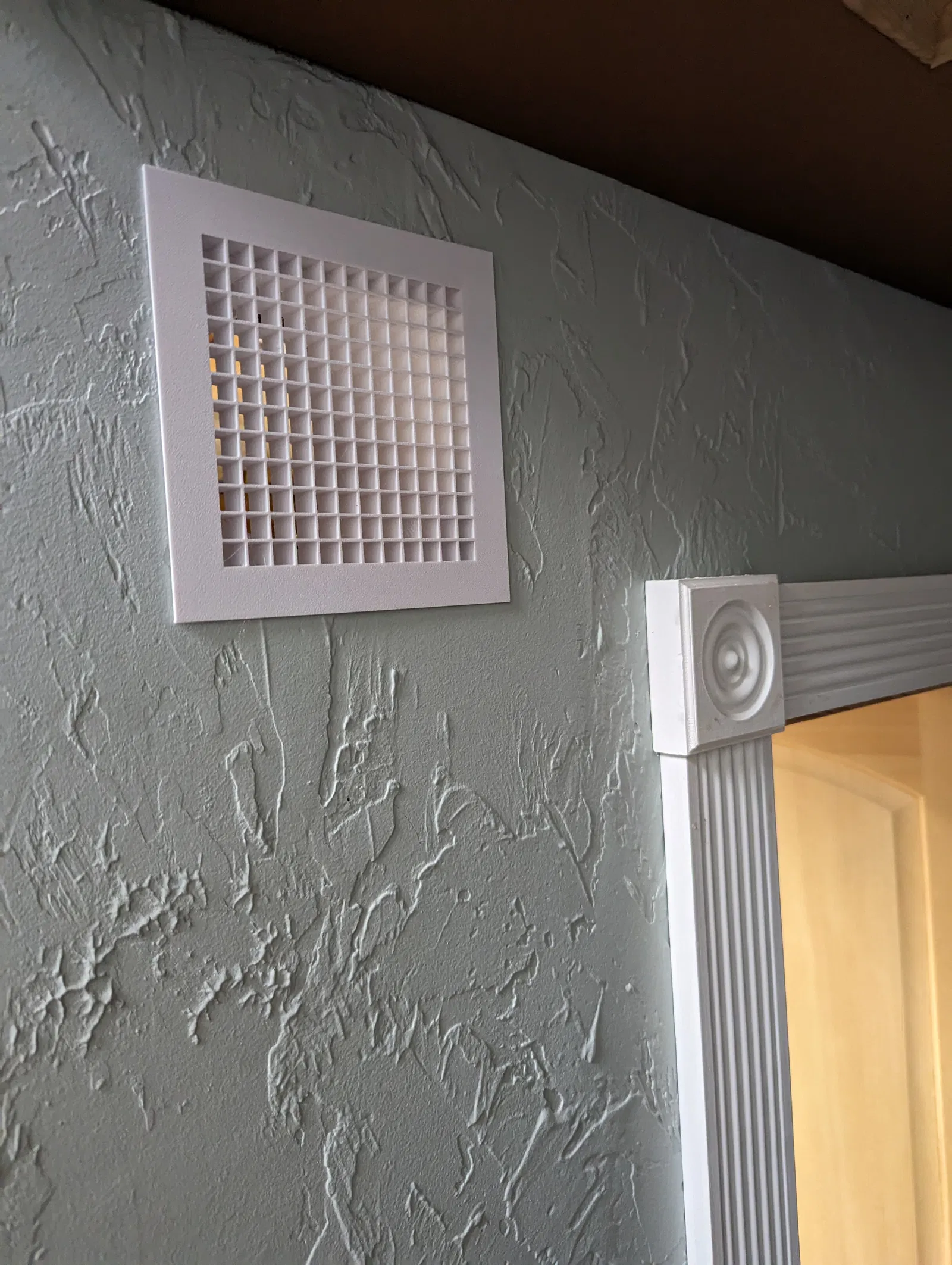 Tấm che cửa gió này dành cho ống PVC thành mỏng 4 inch (ống thoát nước) dùng làm ống dẫn khí. (LƯU Ý!! Tấm này sẽ không vừa với ống PVC Schedule 40 trừ khi bạn thay đổi kích thước tệp khi cắt lát!) Tấm này cũng có thể dùng cho ống kim loại tấm nếu bạn sử dụng đầu ống kim loại đã bấm. Tôi đã làm một hệ thống thông gió cho toàn bộ ngôi nhà và trong ứng dụng sửa đổi, ống PVC 4 inch hoạt động rất tốt. Nhưng việc tìm tấm che cửa gió rất khó. Tôi chắc chắn rằng mẫu này có thể được điều chỉnh cho các kích thước ống dẫn khác bằng cách thay đổi tỷ lệ mẫu khi cắt lát. Tấm che cửa gió có kích thước vuông 157mm và yêu cầu một lỗ vuông 121mm trên tường. Tôi gắn tấm che cửa gió vào tường bằng Dải keo dán 3M Command Strips dọc theo mặt sau của mặt bích để tránh lộ vít. Lưu ý: Tấm này vừa rất khít, vì vậy có thể cần phải rạch ống để cho phép nó trượt vào tấm che cửa gió. Nó cũng có thể dùng cho ống kim loại tấm nếu bạn sử dụng đầu ống kim loại đã bấm. Dùng băng keo nhôm để gắn ống dẫn vào ống.