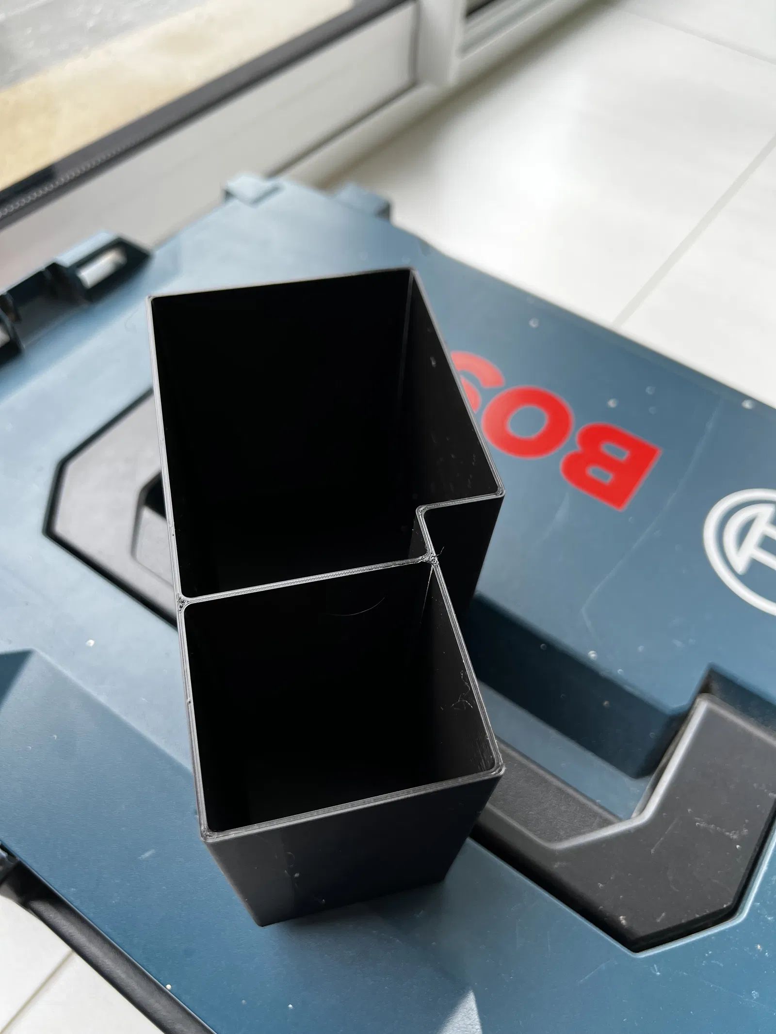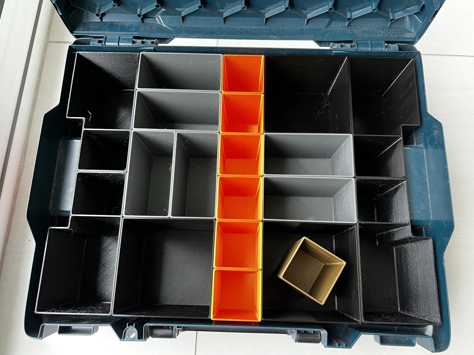 Các ngăn chứa đồ cho Hộp Bosch L-Boxx 136mm. Yêu cầu in 2 góc đối xứng. In đơn giản bằng PLA hoặc vật liệu khác ở chế độ 0,2mm không cần hỗ trợ.