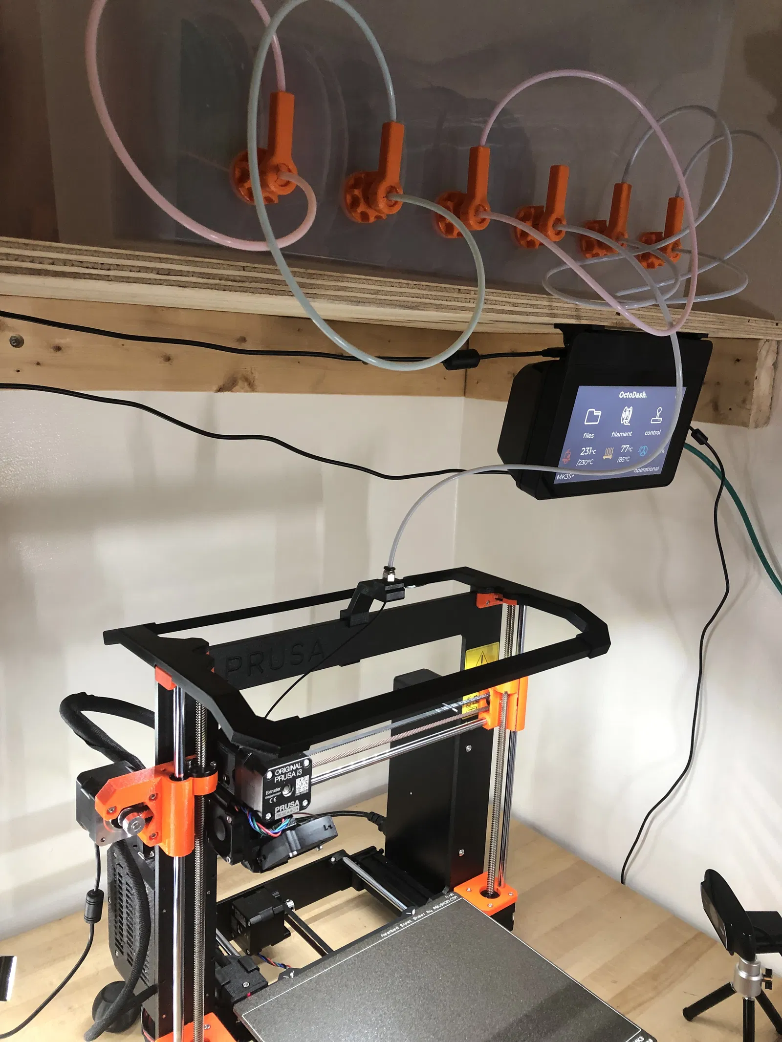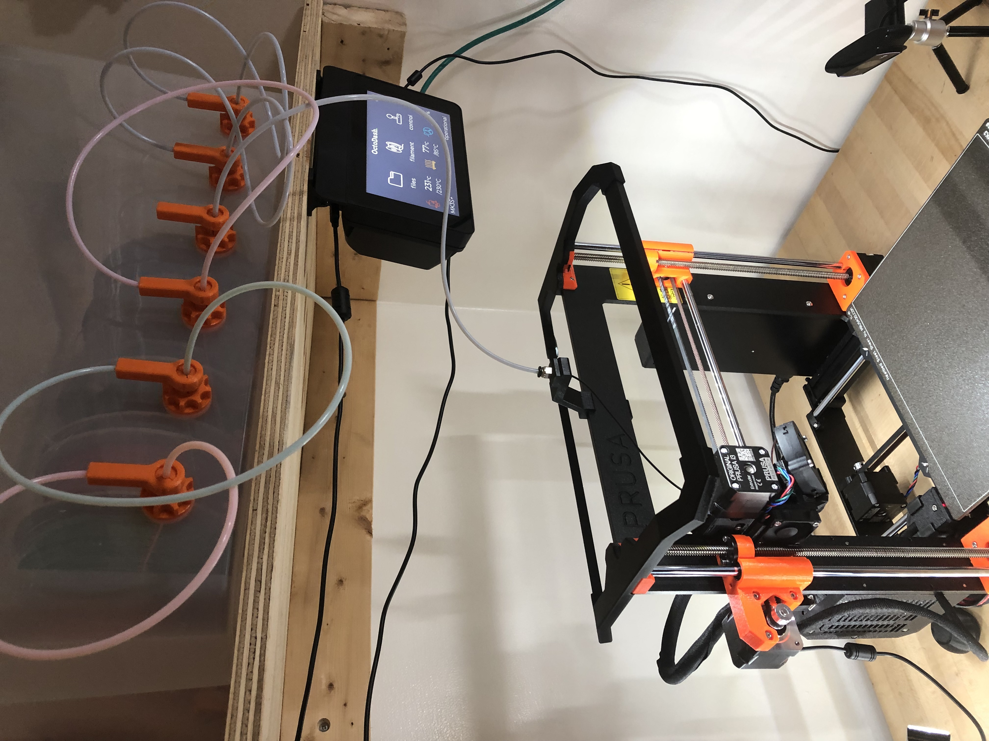 Tôi đã sử dụng hướng dẫn của Clyde Bradshaw một thời gian và đã thành công. Tuy nhiên, tôi đã thay đổi thiết lập in của mình và giờ đây có một hộp đựng khô với nhiều sợi dây tóc đi ra từ ống PTFE, vì vậy tôi đã thiết kế cái này để phù hợp với chúng.
