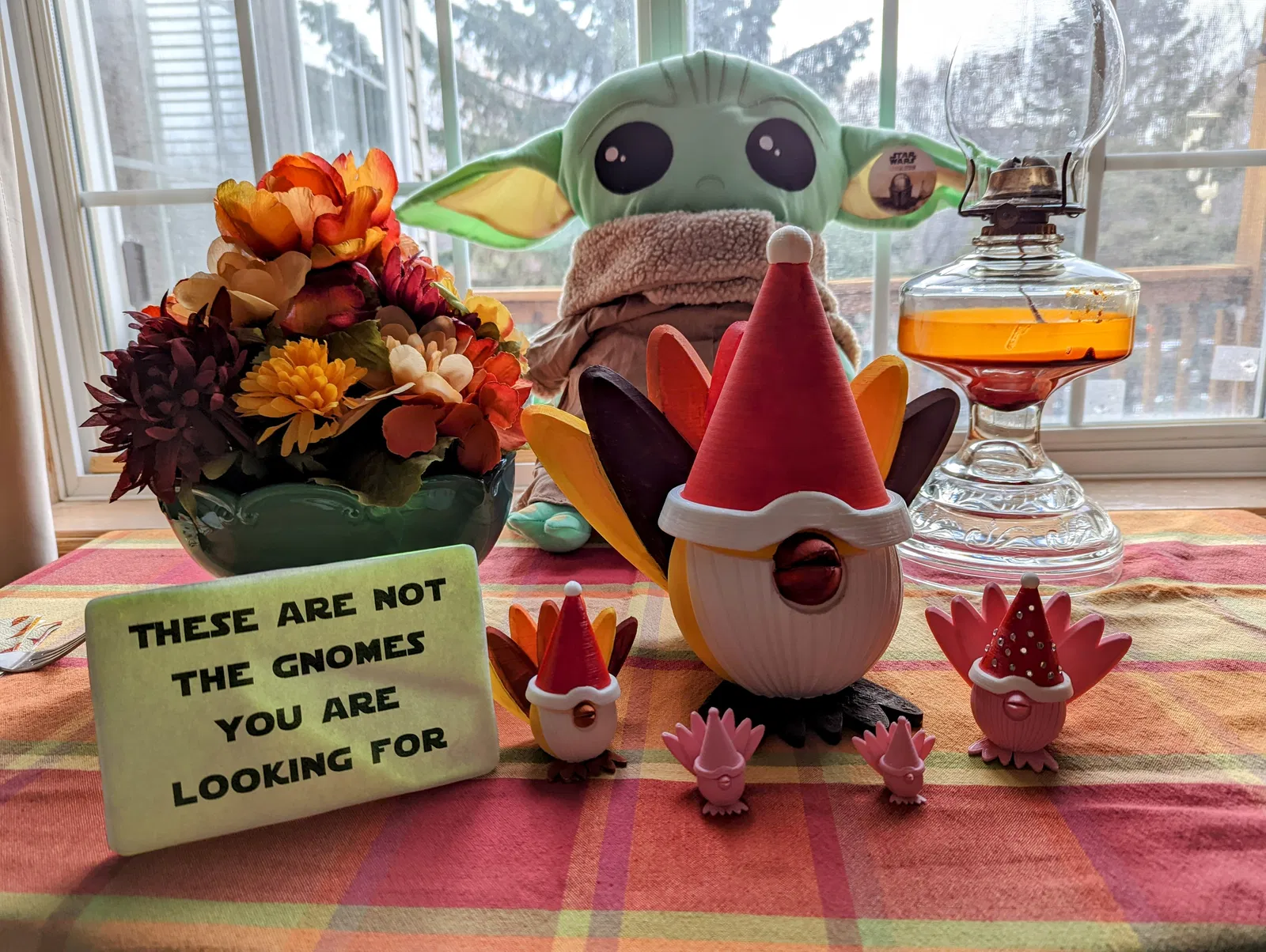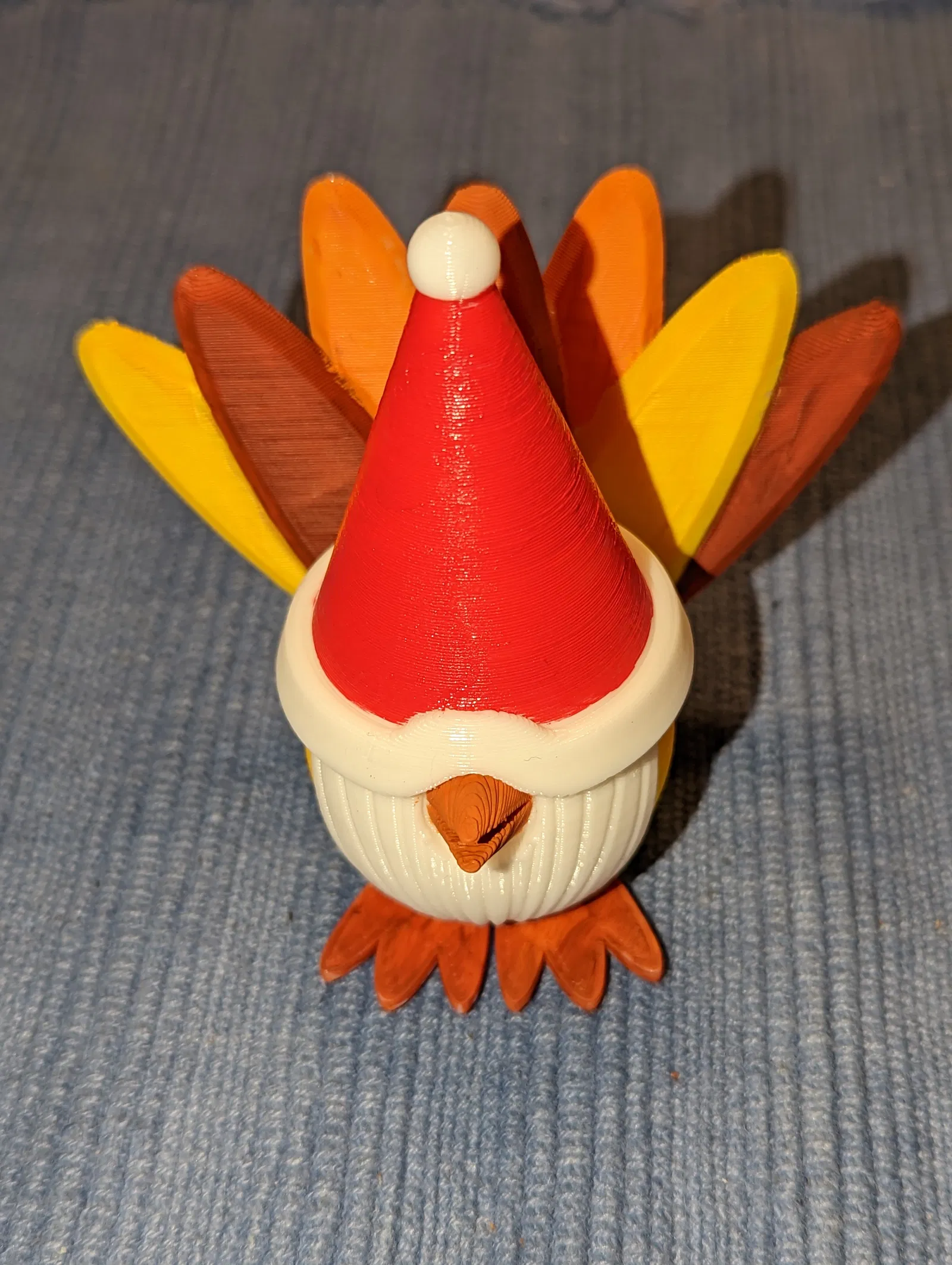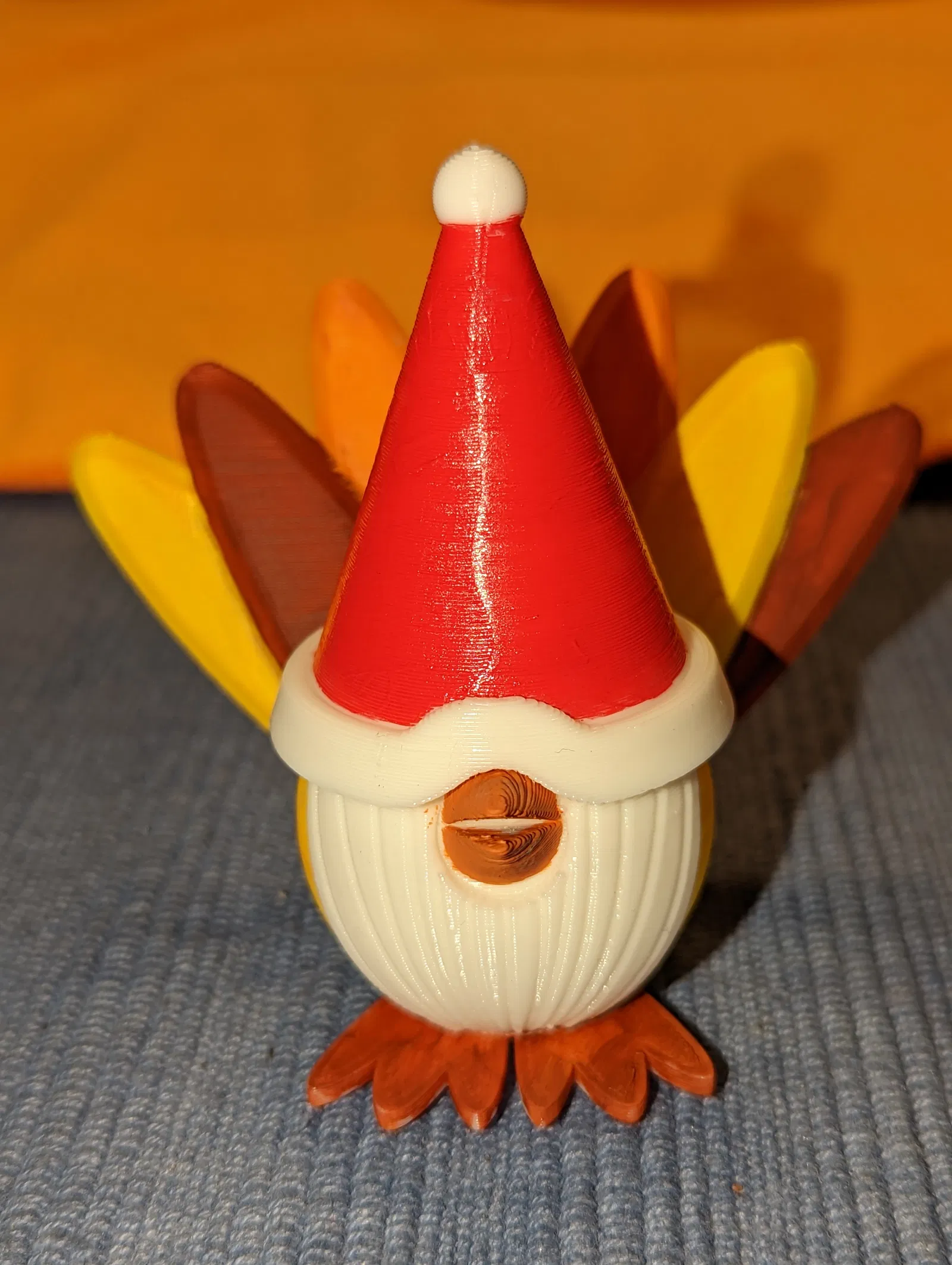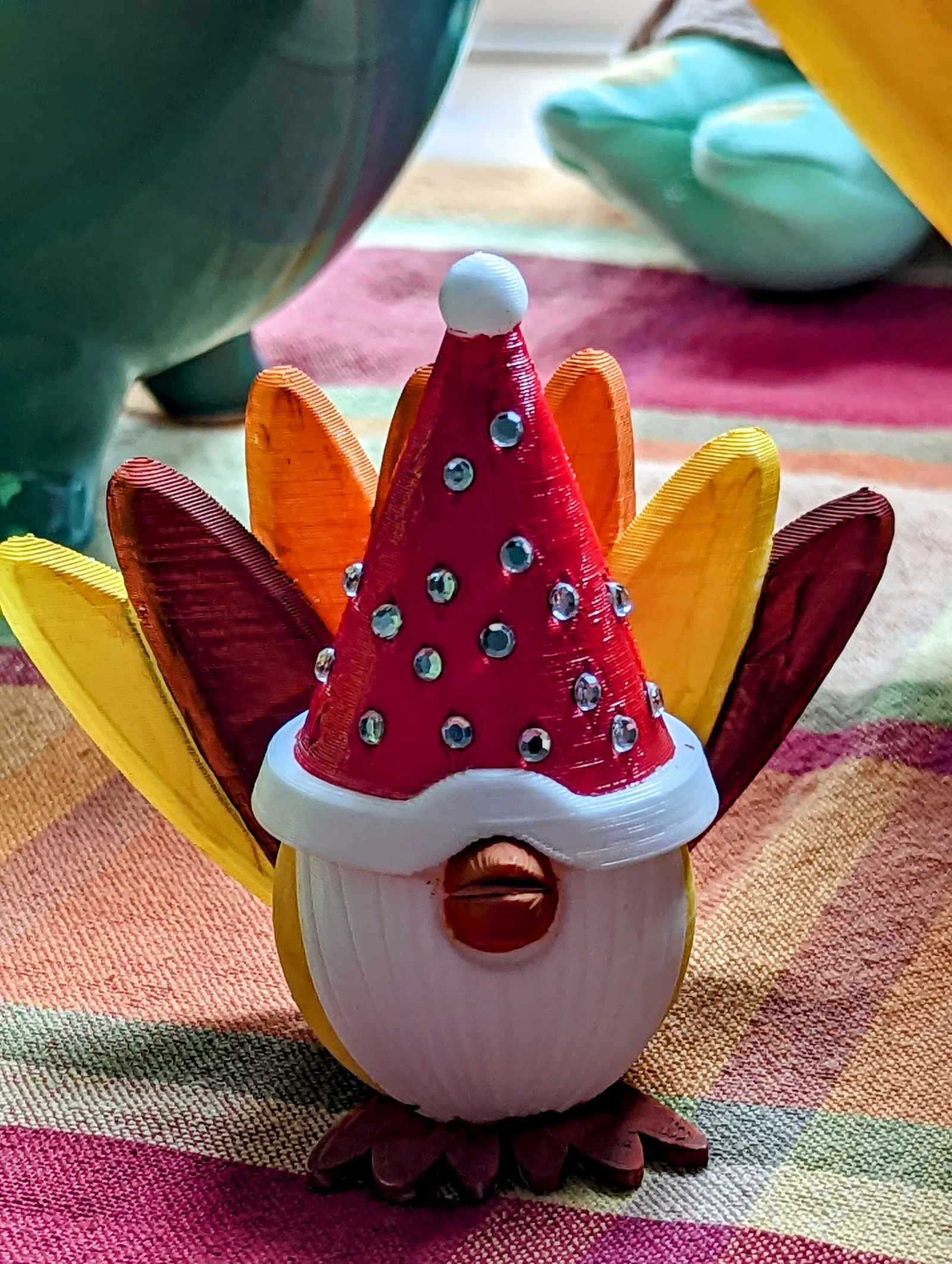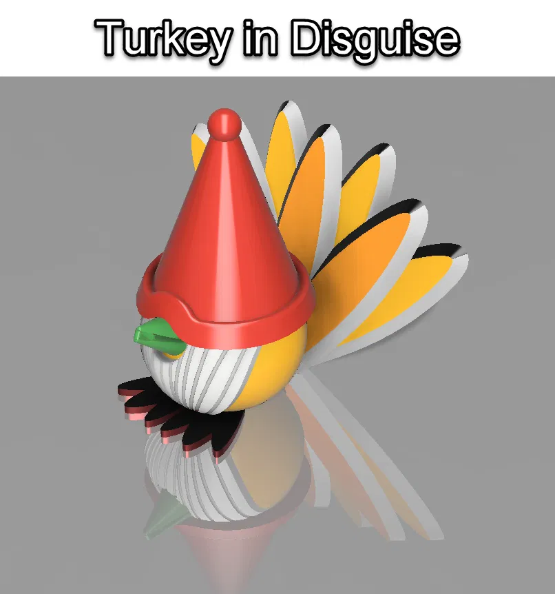 Chú gà tây này đang cố gắng hết sức để ẩn mình khỏi trở thành tâm điểm trên bàn ăn Lễ Tạ ơn, bằng cách cải trang thành một chú lùn vườn. In dễ dàng, không cần giá đỡ, chỉ mất khoảng 3 giờ.