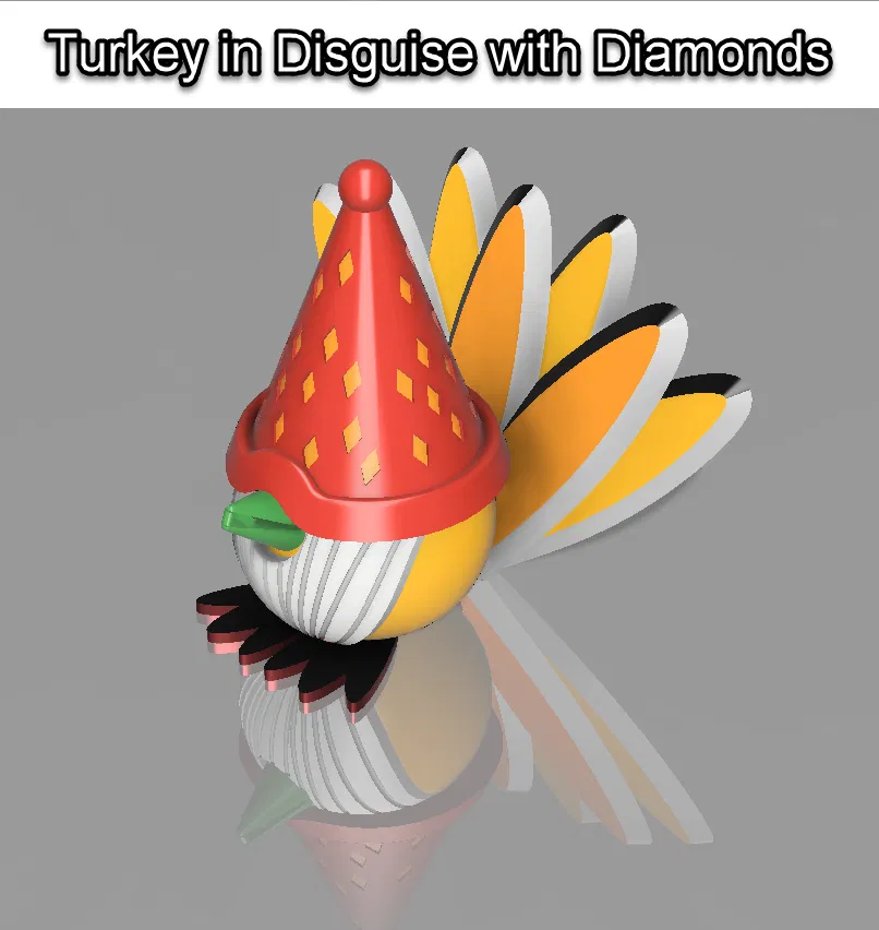 Có 2 phiên bản mũ được bao gồm. Một phiên bản trơn cho "Gà tây cải trang" và một phiên bản có hoa văn kim cương cho "Gà tây cải trang với kim cương". ;-)