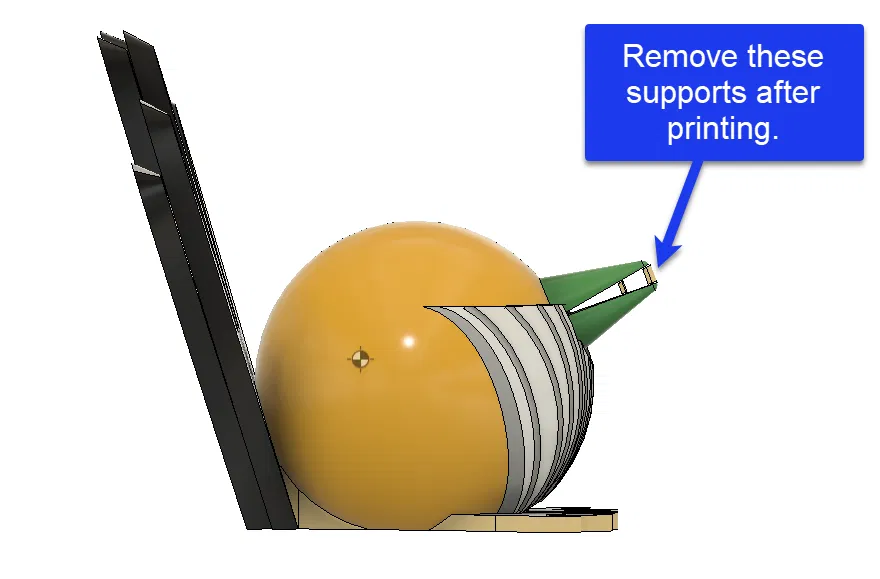 Lưu ý có 2 giá đỡ nhỏ được tạo sẵn ở mỏ cần được loại bỏ sau khi in.
