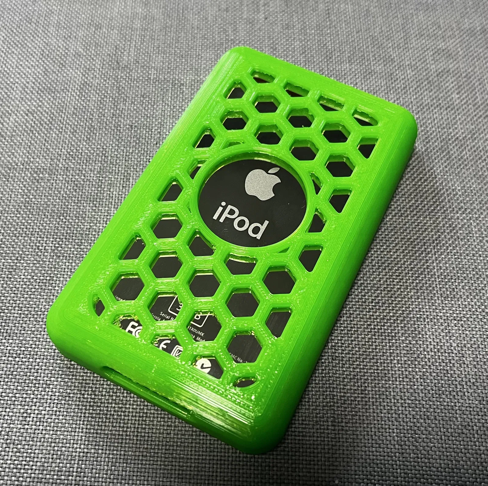Tự tay làm ốp lưng cho iPod Classic 5G (30GB) với thiết kế mặt lưng lục giác độc đáo. Sản phẩm được làm từ TPU, in úp mặt trước và có hỗ trợ. Kèm theo đó là dock sạc và hộp đựng cứng cáp, tiện lợi.