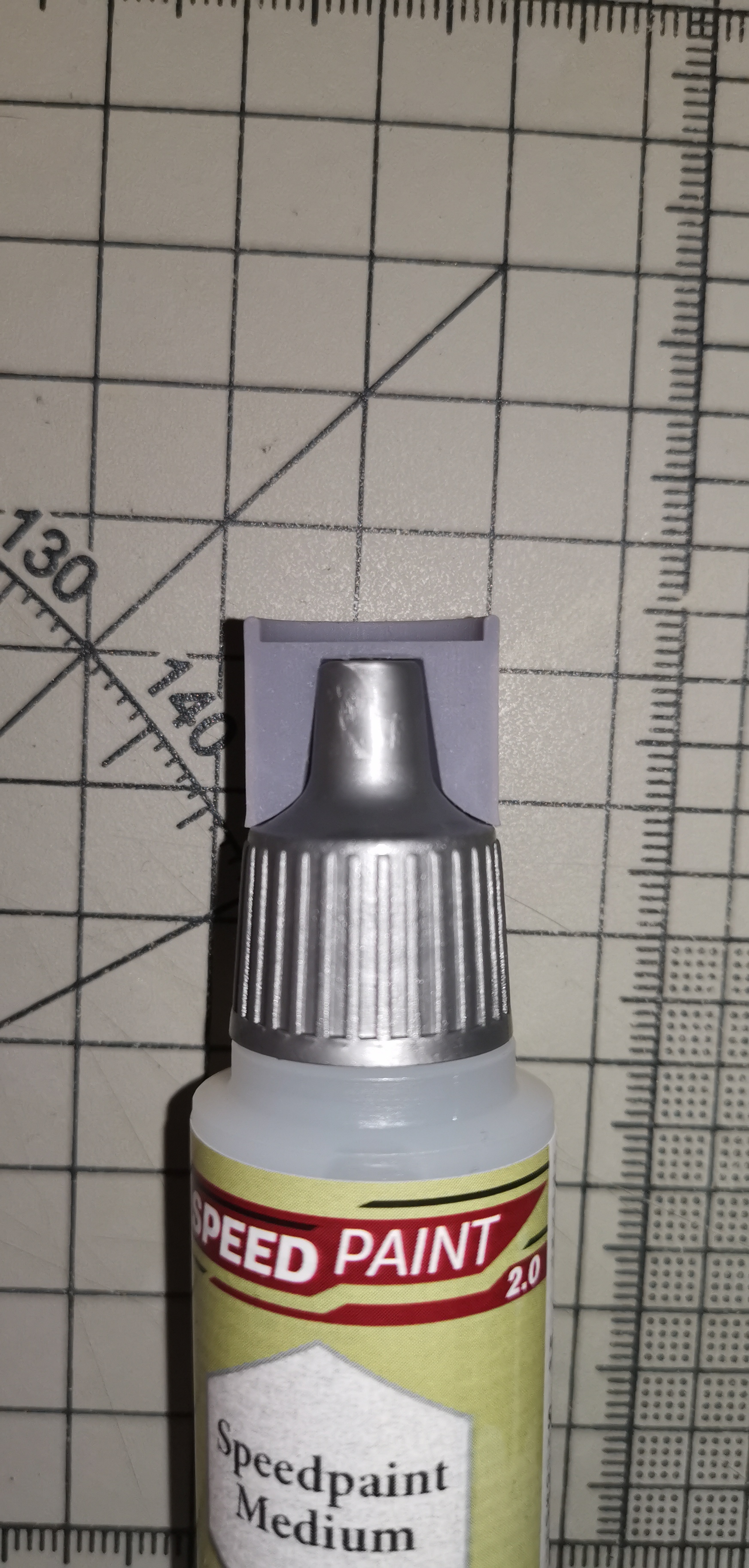 Lưu ý về tính tương thích: Có vẻ như thiết kế nắp chai của Vallejo đã thay đổi theo thời gian và mô hình này không khớp hoàn toàn với phiên bản mới nhất của nắp chai Vallejo. Khớp tốt nhất với nắp chai dòng Vallejo Game Color cũ và khớp ổn với dòng Vallejo Game Air và Model Air. Khuyến nghị in thử một chiếc trước khi in toàn bộ số lượng.