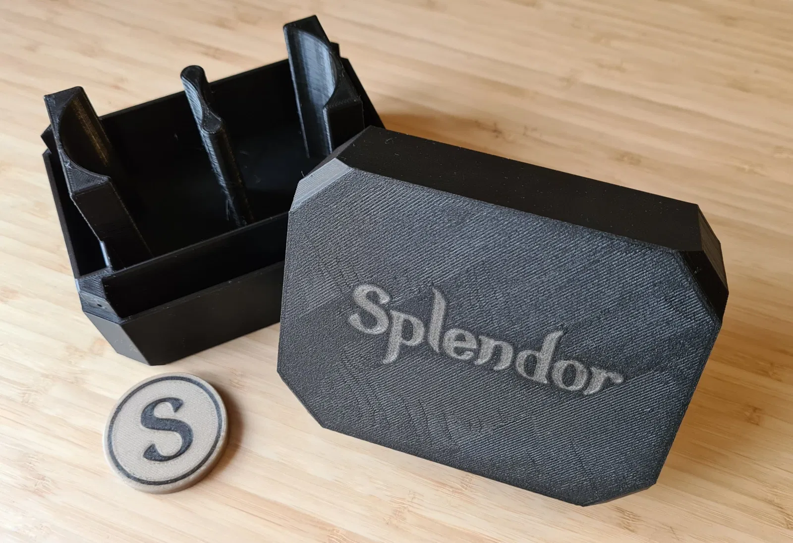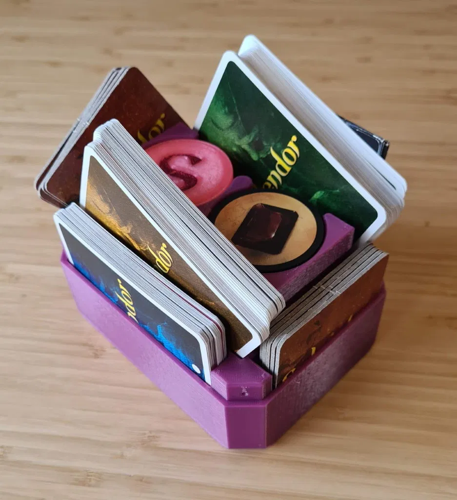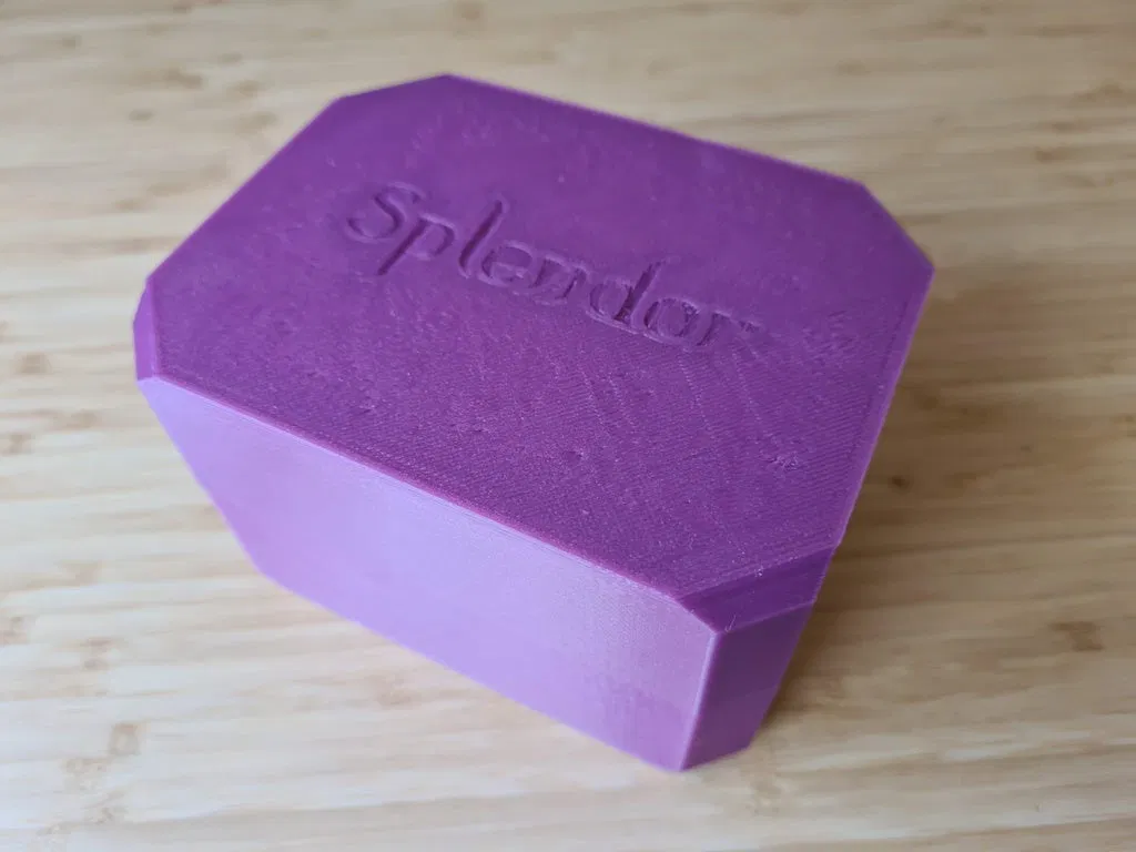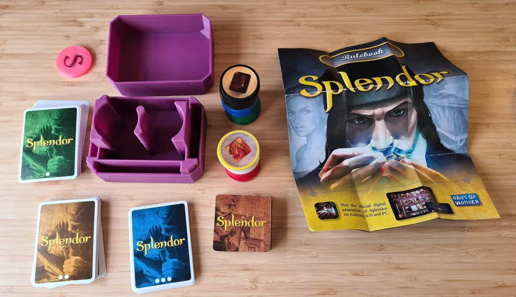 Một hộp lưu trữ tuyệt đẹp cho board game Splendor. Hộp có kích thước lớn hơn một chút để tăng tính tiện dụng và có thiết kế giống đá quý. Có phiên bản lớn hơn cho thẻ có bọc.