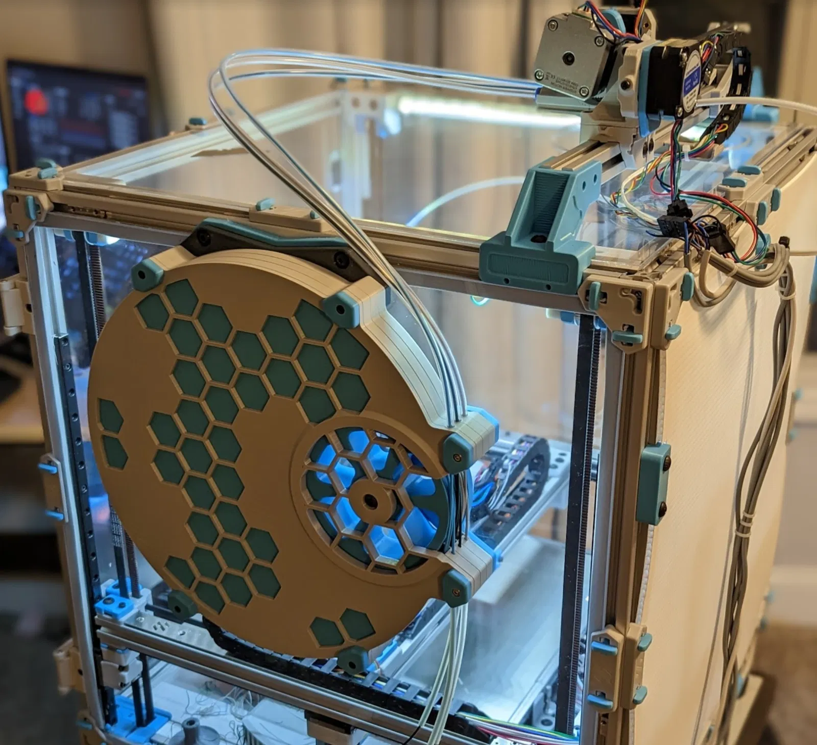 Stern-Wheeler là bộ đệm sợi nhựa cho máy in 3D FDM đa vật liệu, thiết kế kín giúp nạp sợi dễ dàng. Có ba kích cỡ (mini, tiêu chuẩn, mega) với khả năng đệm khác nhau, phù hợp với các bàn in lớn. Hỗ trợ in ABS, yêu cầu 2 lớp biên/15% độ rỗng cho bánh xe và 4 lớp biên/40% độ rỗng cho phần còn lại.