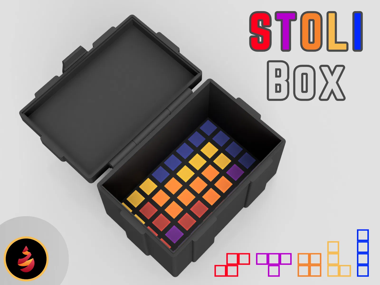 Chiếc hộp có khóa này sẽ chứa 10 mảnh STOLI mỗi loại. Hộp STOLI có thể in với hoặc không có màu. Bao gồm cả phiên bản nắp đơn sắc và đa sắc. Hướng dẫn lắp ráp chi tiết và các loại sợi PLA đã sử dụng được cung cấp.