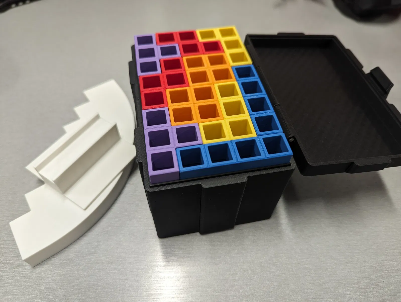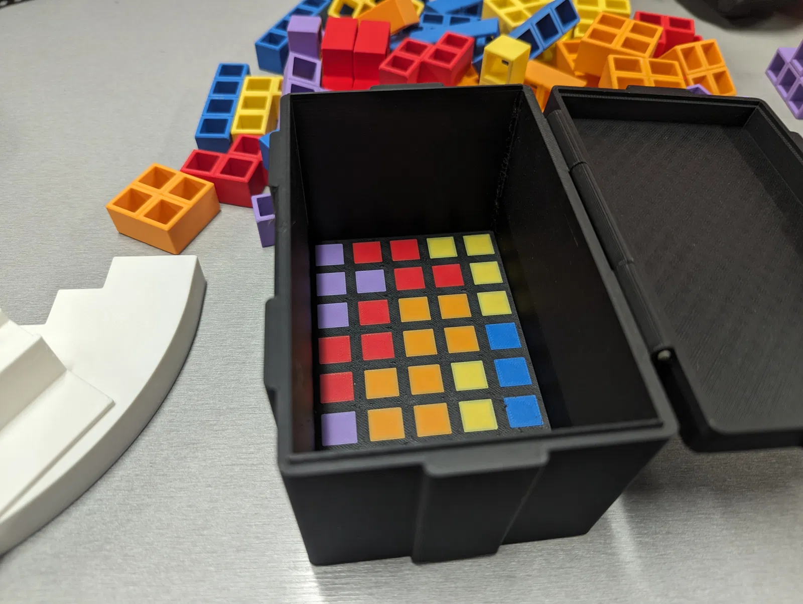 Không yêu cầu cài đặt đặc biệt. Tuy nhiên, tôi đã sử dụng máy in đa vật liệu để thêm màu sắc vào bên trong hộp. Điều này giúp bạn nhớ vị trí đặt từng mảnh để mọi thứ khớp với nhau. Có 40 ô vuông bên trong có thể dễ dàng sơn để khớp với bất kỳ màu nào bạn đã sử dụng cho các mảnh STOLI của mình.