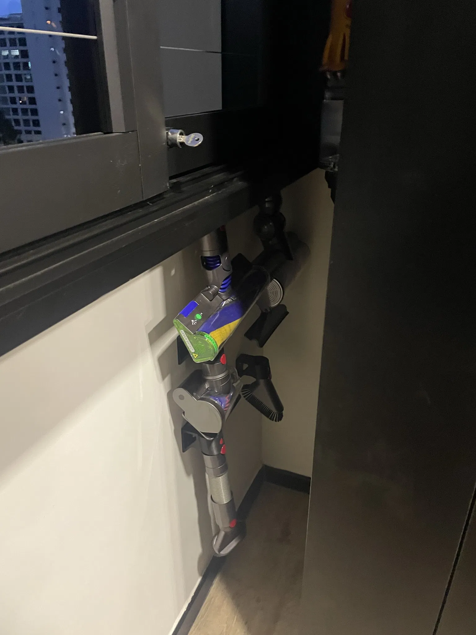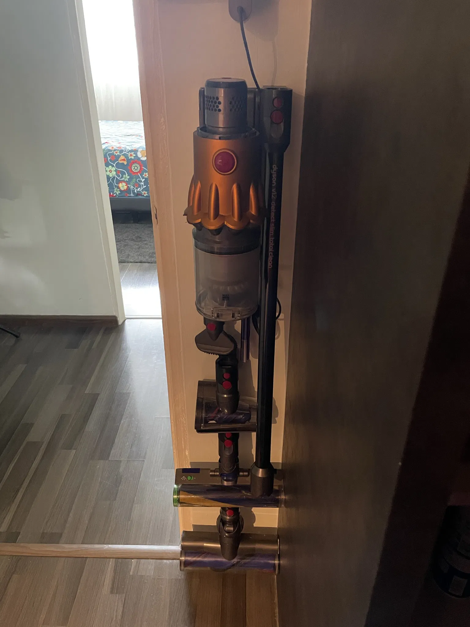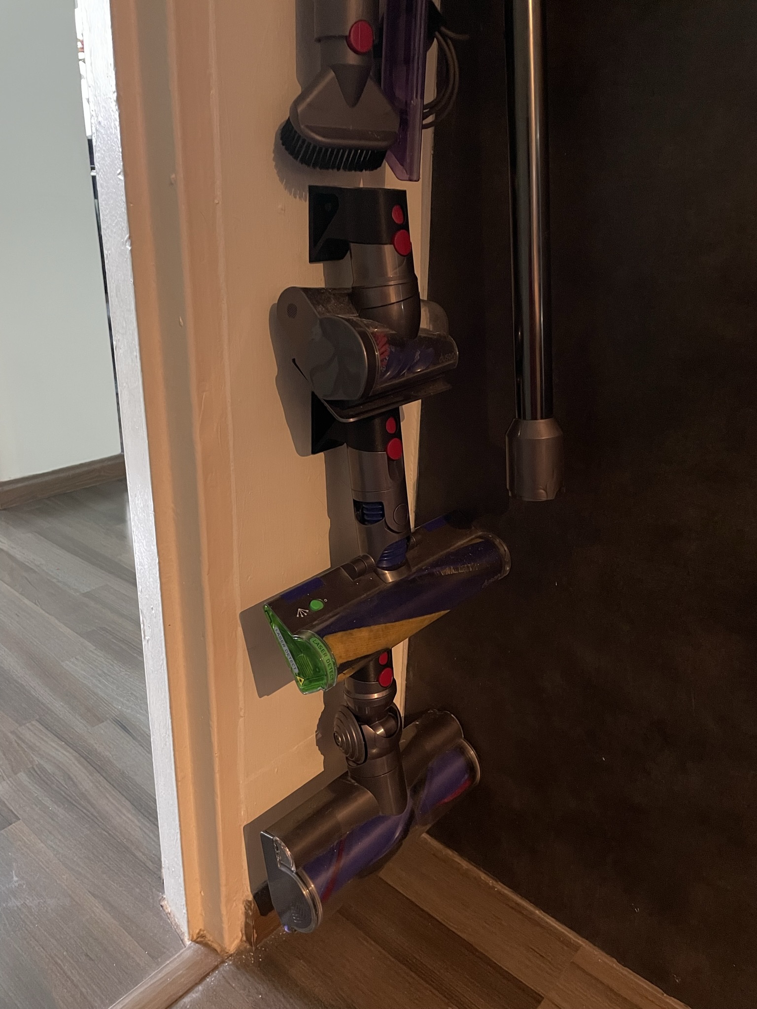 Chỉnh sửa từ "Dyson v12 Slim Accessory Wall Mount" của skyhawkcosplay. Có thêm một thanh đỡ dưới và một lỗ vít bổ sung. Tái tạo các lỗ vít để sử dụng vít tự khai thác cỡ M4.