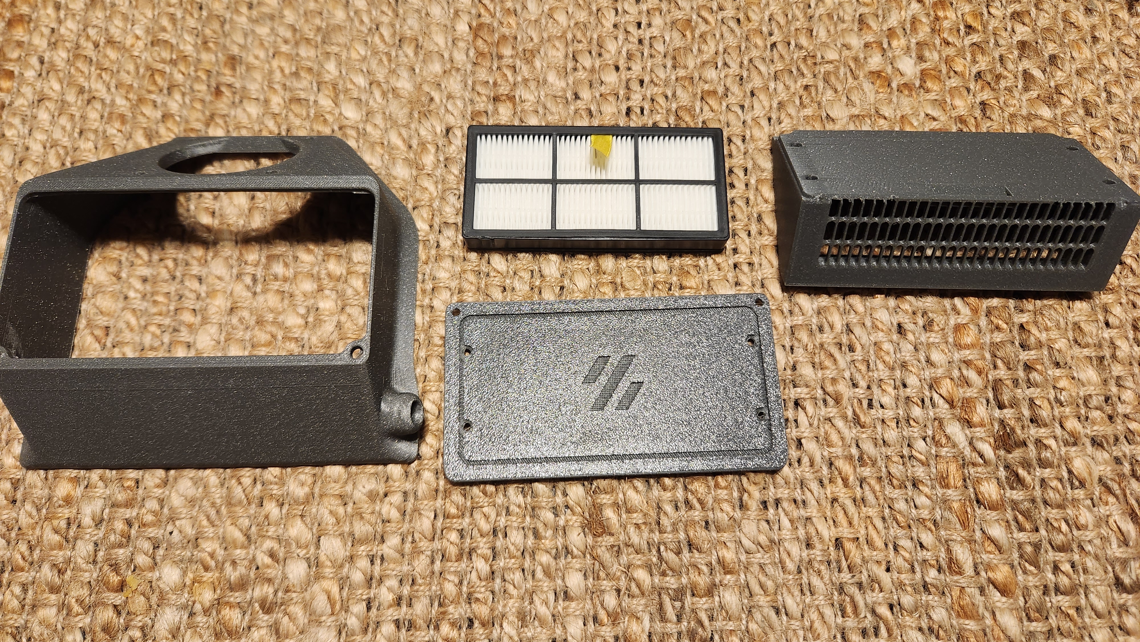 Bộ chuyển đổi ống xả, lọc Hepa và Carbon cho máy in 3D Voron 2.4. Tệp Fusion360 cũng được cung cấp, mặc dù người thiết kế ban đầu cảm thấy nó có thể chưa hoàn hảo.