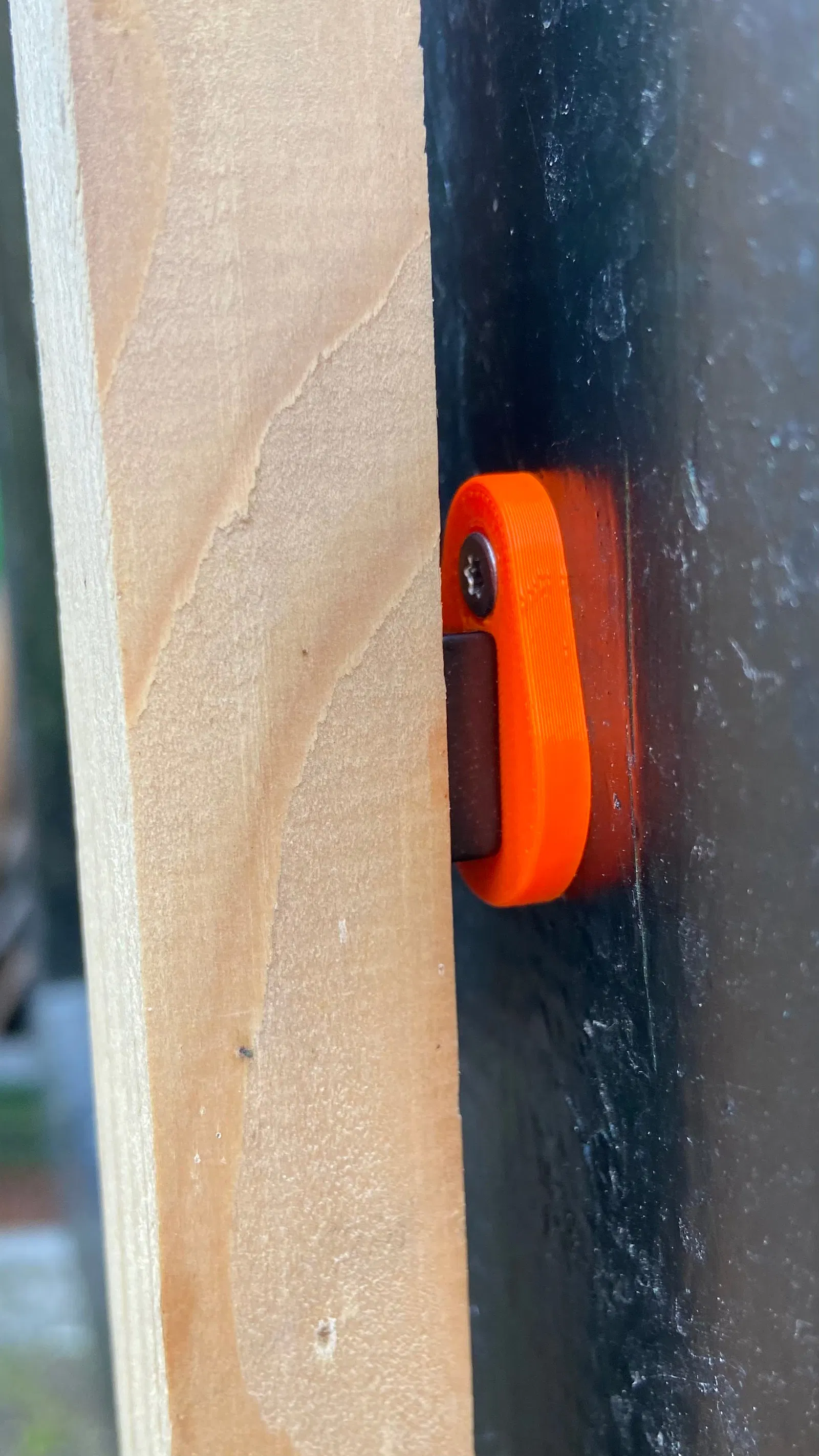 Chốt cửa đơn giản / chặn cửa dùng cho nhà kho của bạn. Bản lề được giữ bằng vít đồ nội thất và nam châm trong giá đỡ đã in. In bằng PETG mà không cần hỗ trợ.