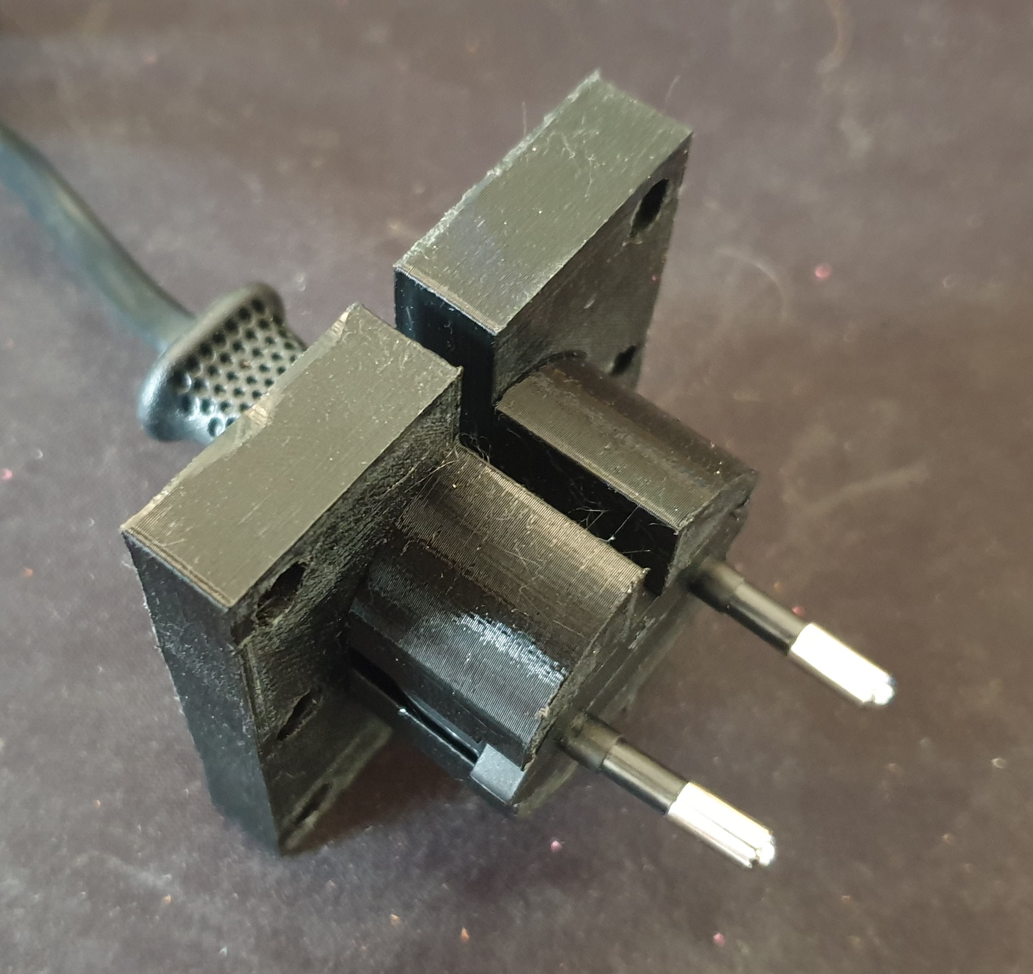 - Vặn cẩn thận bộ giữ phích cắm Euro (bằng 2x M3x14). Không vặn quá chặt - bộ giữ dễ bị gãy