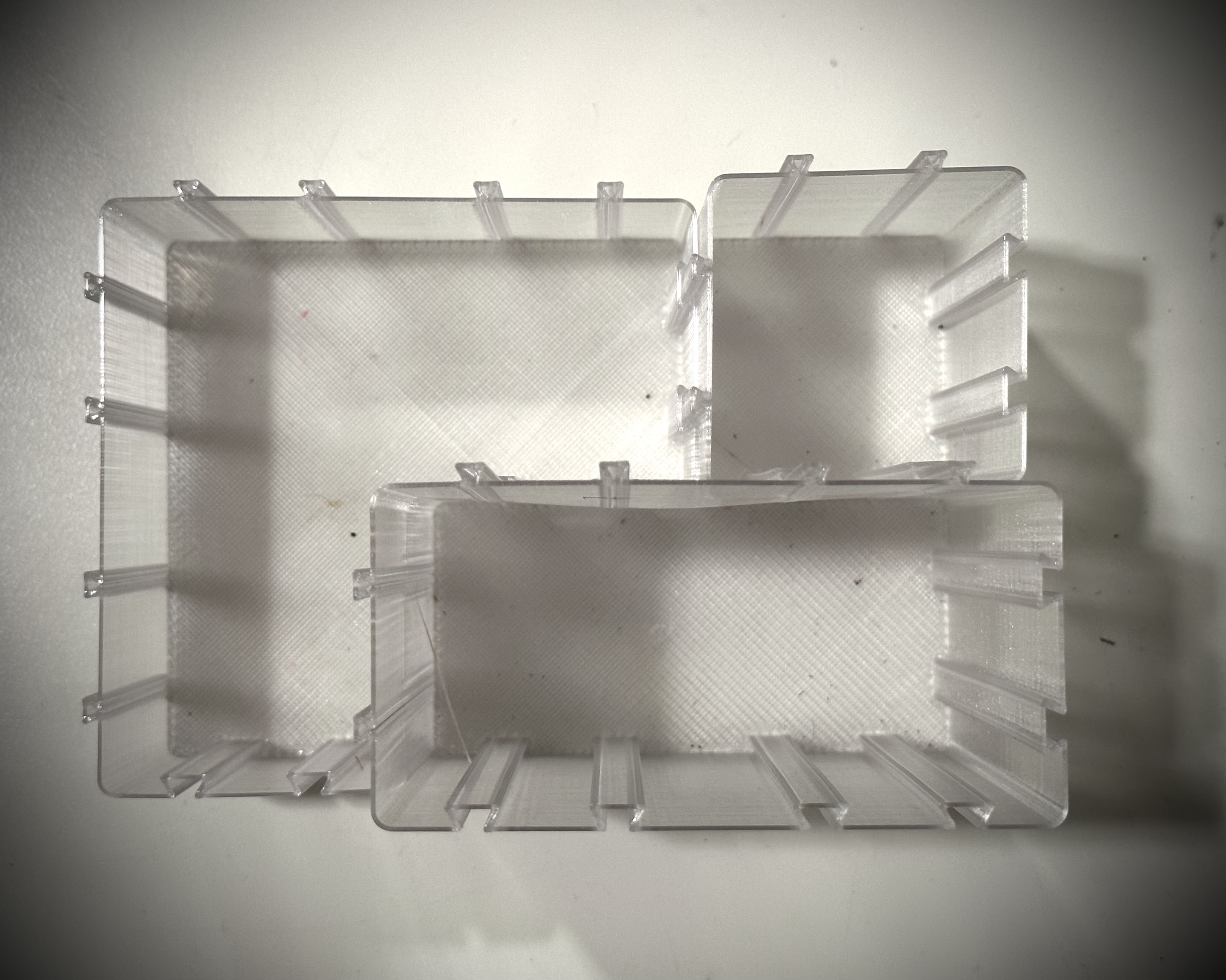 Tổ chức các công cụ in ấn của bạn (hoặc các vật dụng bàn làm việc khác) với các khay/thùng mô-đun, lồng vào nhau, in nhanh, đơn giản này! Có thể thay đổi kích thước, kết hợp và phối hợp để tạo ra hệ thống lưu trữ tùy chỉnh của bạn.