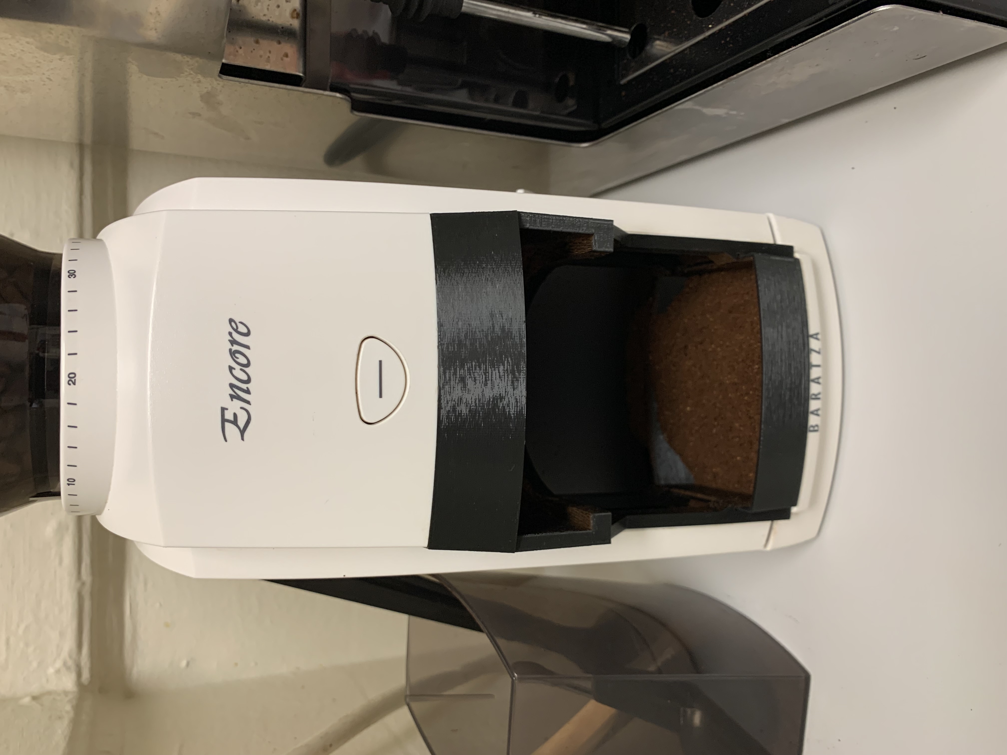 Phụ kiện này vừa vặn vào khay xay của máy Baratza Encore, cho phép bạn đặt portafilter và xay trực tiếp lên đó. Bao gồm một khay hứng bã cà phê tràn và được thiết kế cho portafilter Gaggia Classic 58mm, với các thông số kích thước cụ thể. Cần in với hỗ trợ và dán các bộ phận lại với nhau. Độ khít được thiết kế chặt để đảm bảo sự ổn định.