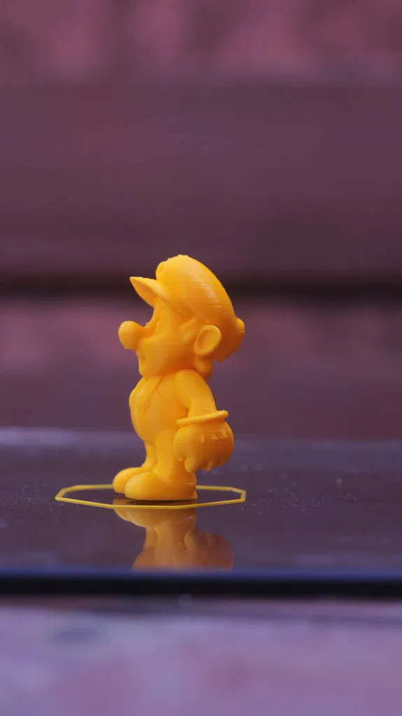 Mô hình 3D của Super Mario, một nhân vật chính trong trò chơi điện tử nổi tiếng. Hoàn hảo cho người hâm mộ Nintendo. Hỗ trợ in với máy Ender 3, sử dụng Rafts, độ phân giải 0.15mm, infill 5% và sợi PLA màu vàng.