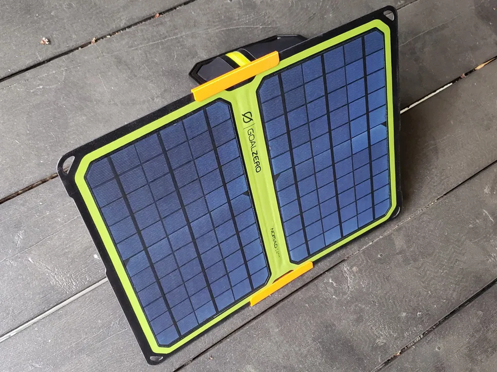 Kẹp làm thẳng cho tấm pin năng lượng mặt trời Goal Zero Nomad. Cái này làm cứng phần gấp lại, giúp tấm pin đứng thẳng hơn. Giảm thiểu tình trạng tấm pin bị cong, gập không mong muốn, giữ cho nó luôn ở vị trí tối ưu để thu năng lượng mặt trời hiệu quả.